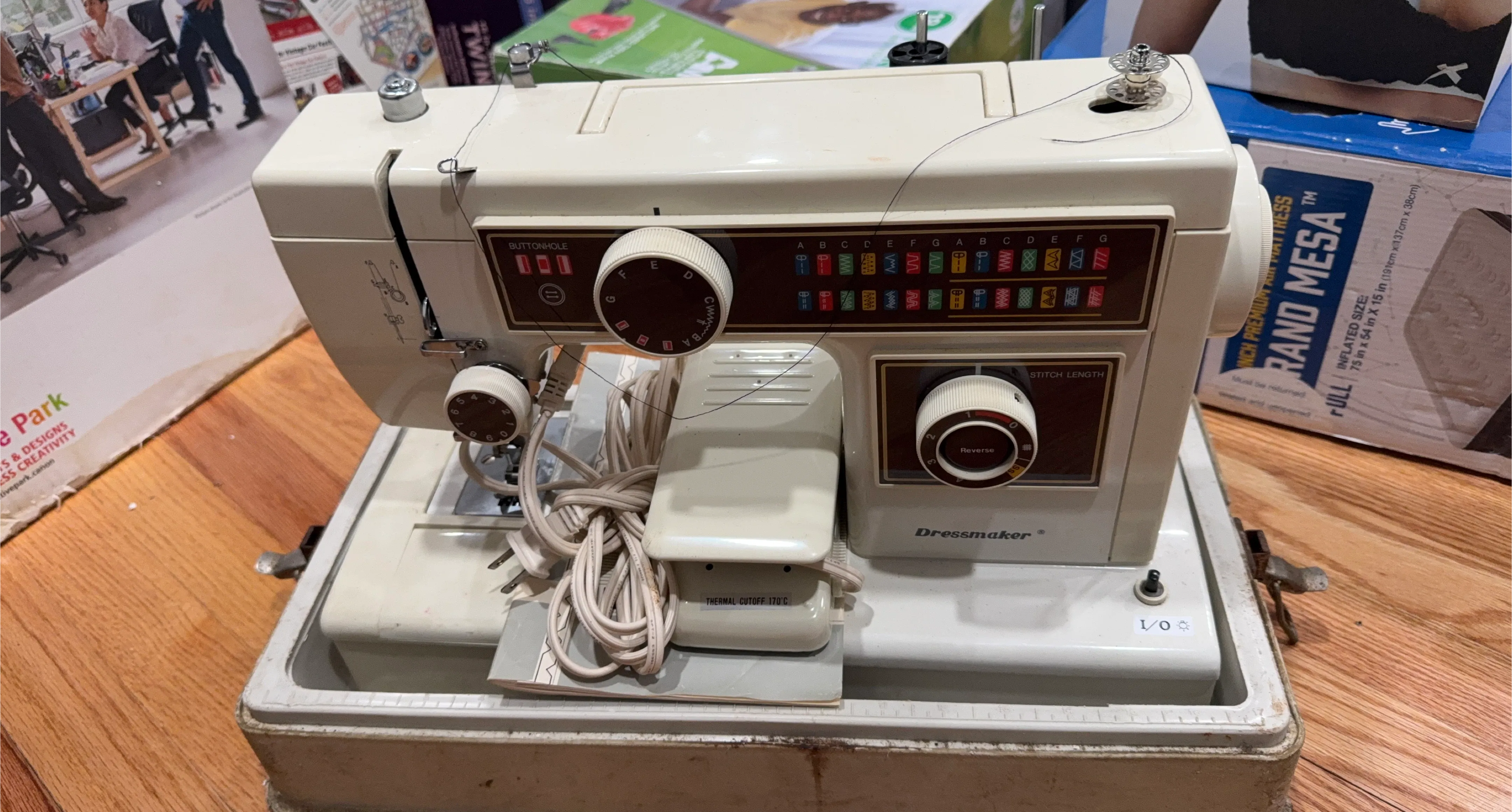 Selling a vintage Dressmaker sewing machine! It comes with its original case and foot pedal. It has different stitch settings and a buttonhole function. Great for someone looking to learn to sew or for basic sewing projects