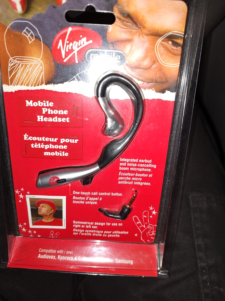 Virgin Mobile Phone Headset with earbud & noise cancelling book mic..