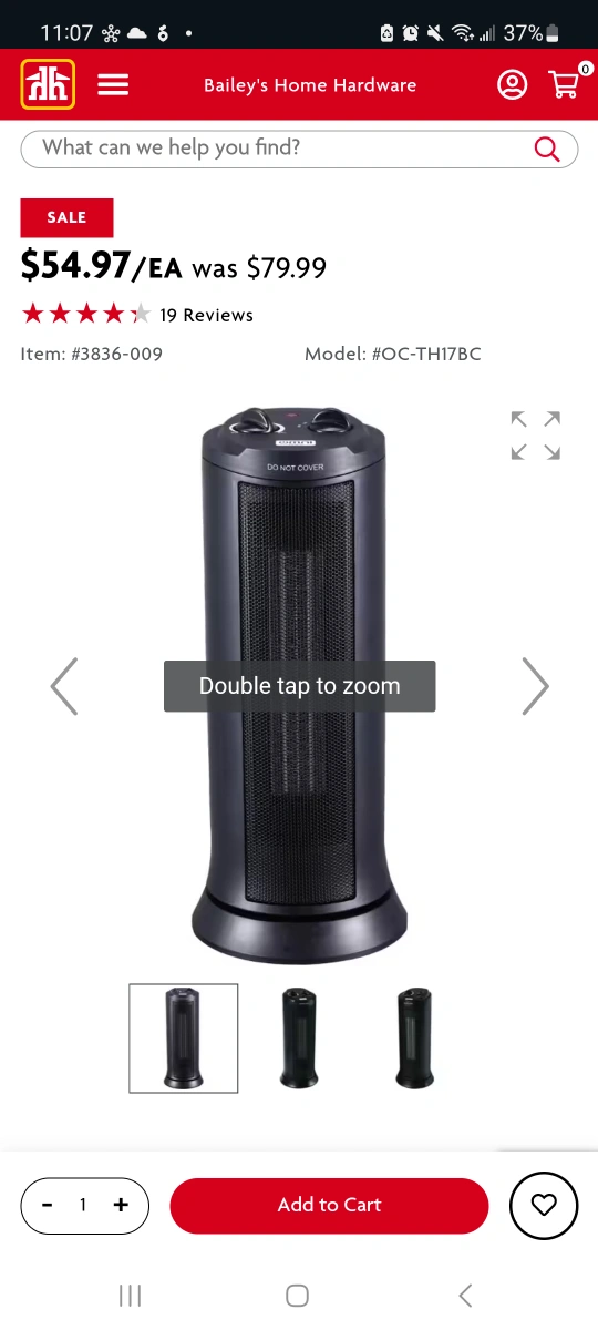 2 heat settings, adjustable thermostat, wide-angle oscillation. Easy to move and carry. Still sealed bought this for my basement but ended up installing an electronic baseboard heater. Past the return date. Retails for $55+ https://www.homehardware.ca/en/1500w-ceramic-tower-heater-black/p/3836009