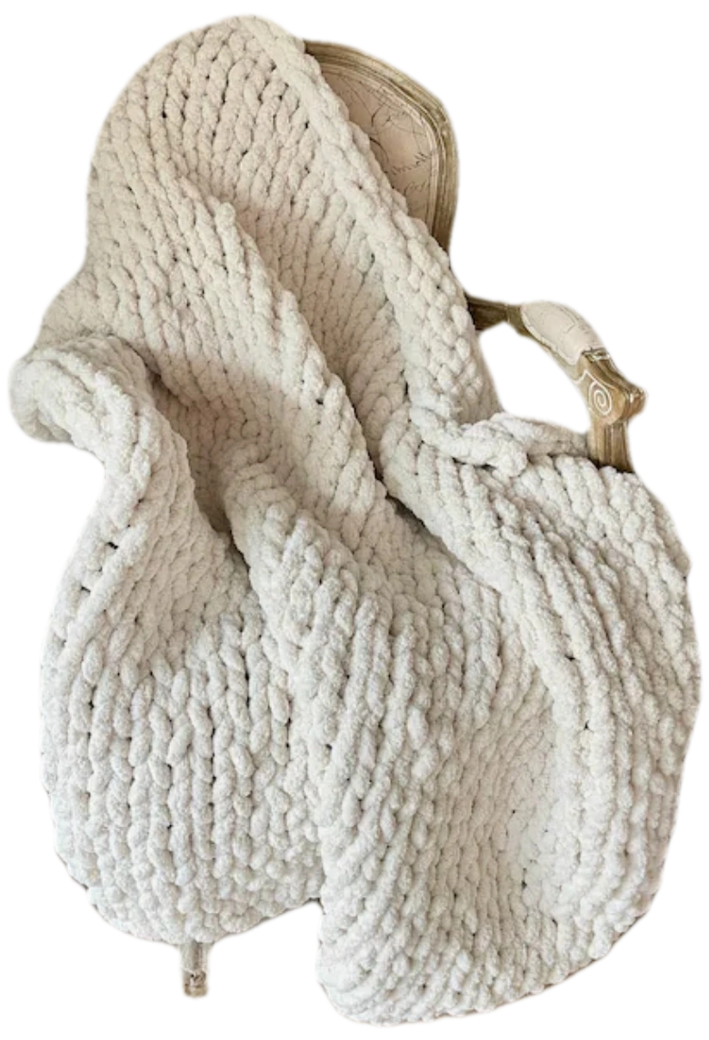 (I'm selling this UNUSED x-large because it is too big for my intentions. I also bought 3 other chenille chunky knit blankets from the same company in the smaller size in misty blue, vintage white, and pink which i use around my home. ALL ARE GORGEOUS FYI !! )