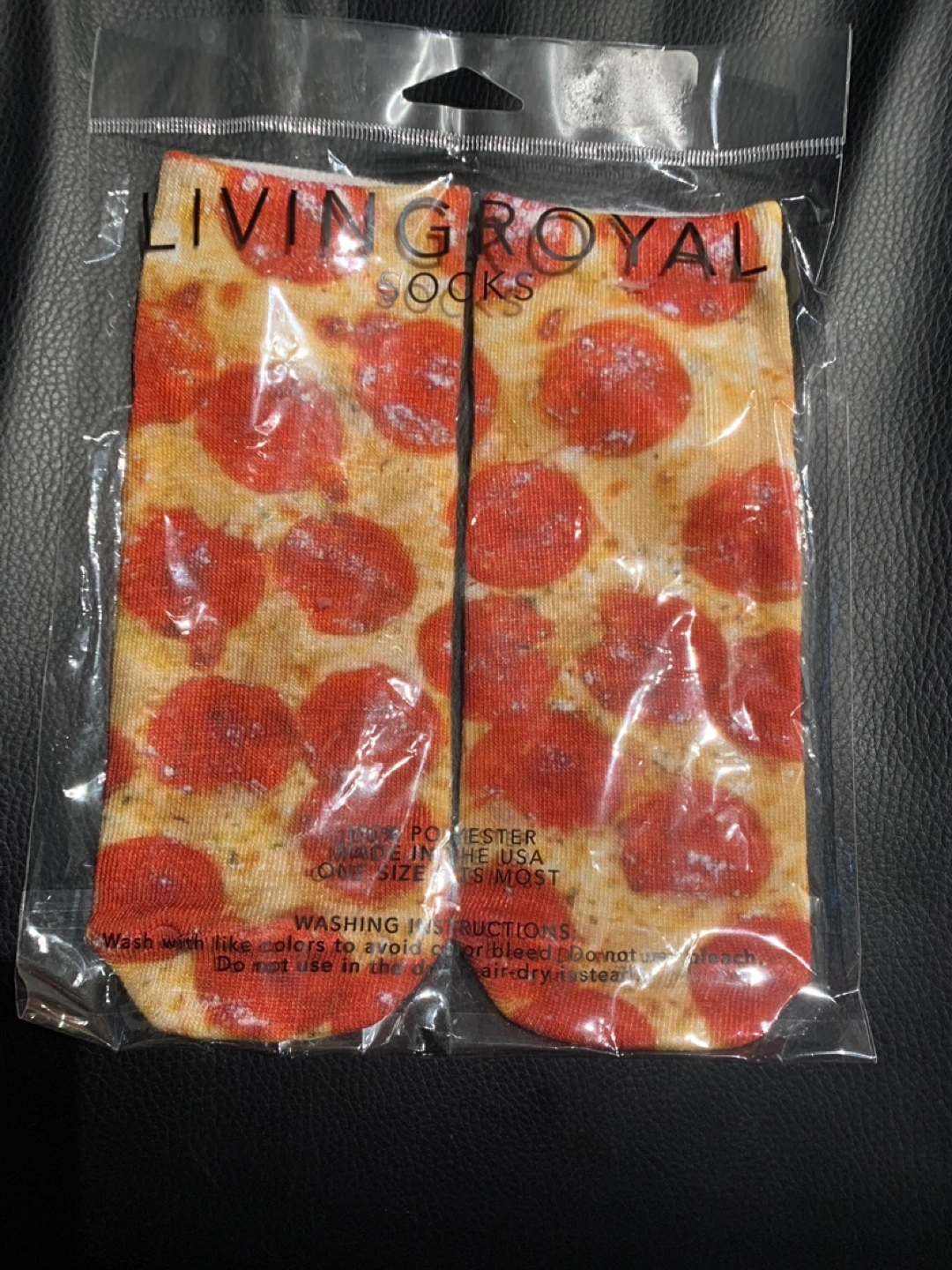 1000+Brand: Living Royal Size:O/S Pattern: Pizza Height: sit just below ankle I donβt think they make this pattern anymore (was not in their website). Retail for $13-15CDN (incl. tax)