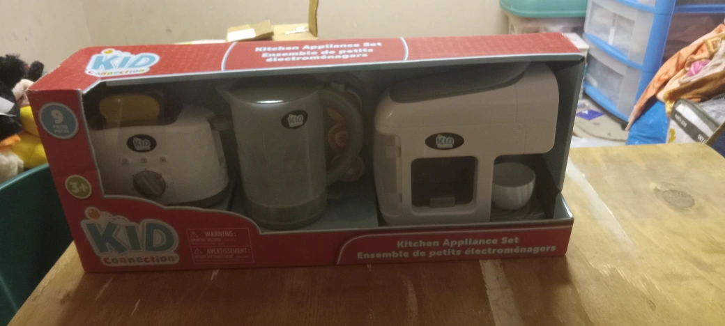 564Play kitchen appliance set, includes a kettle, toaster, and coffee maker. Features light and sound effects. Comes with cups and pretend food. best gift for birthday or Christmas if interested plz msg me thankyou an advance price is firm