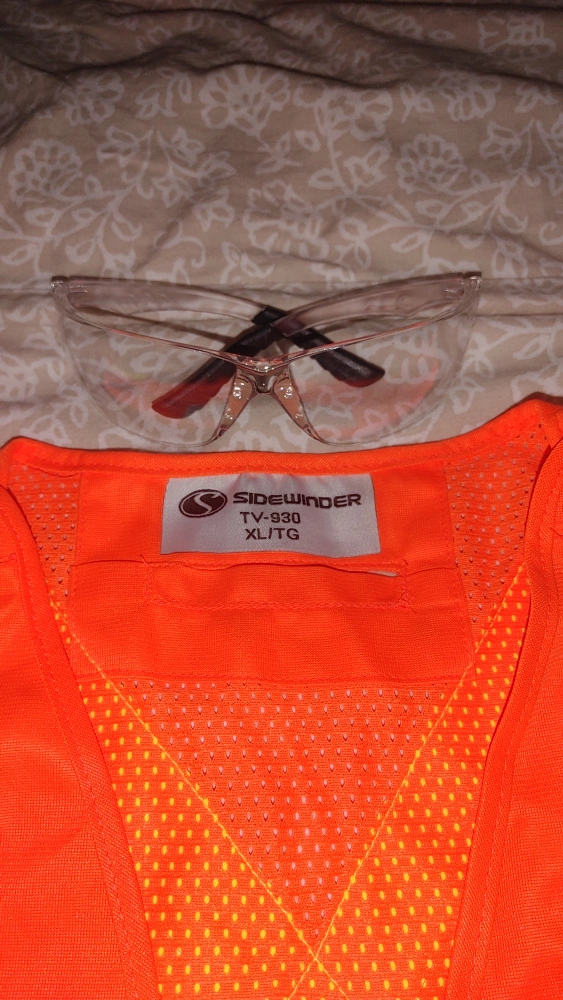 1000+Orange safety vest with reflective strips. Mesh fabric. Size XL/TG. Brand new with safety goggles. Please pickup thanks.