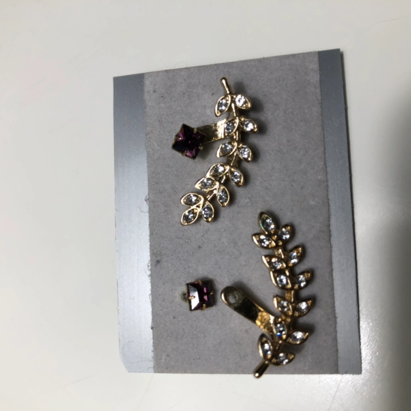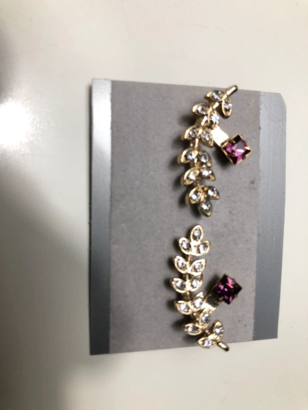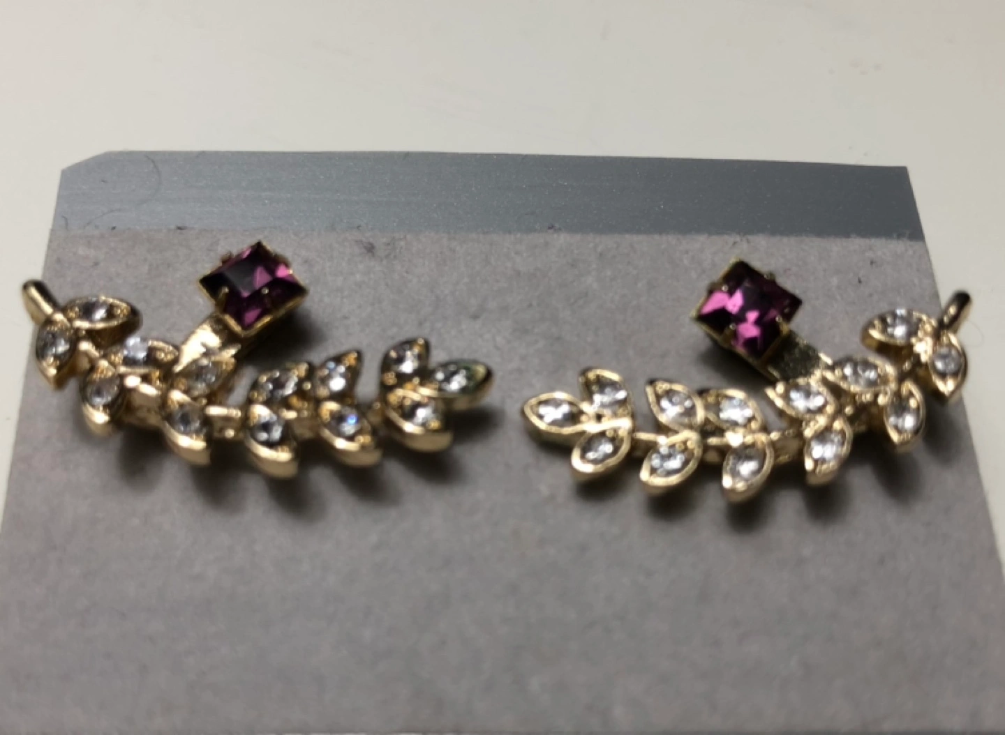 Gold leaf ear cuffs with purple gemstones, perfect for adding a touch of sparkle to any outfit. Purple stone stud earrings can be worn on their own, or combined with the ear cuff.