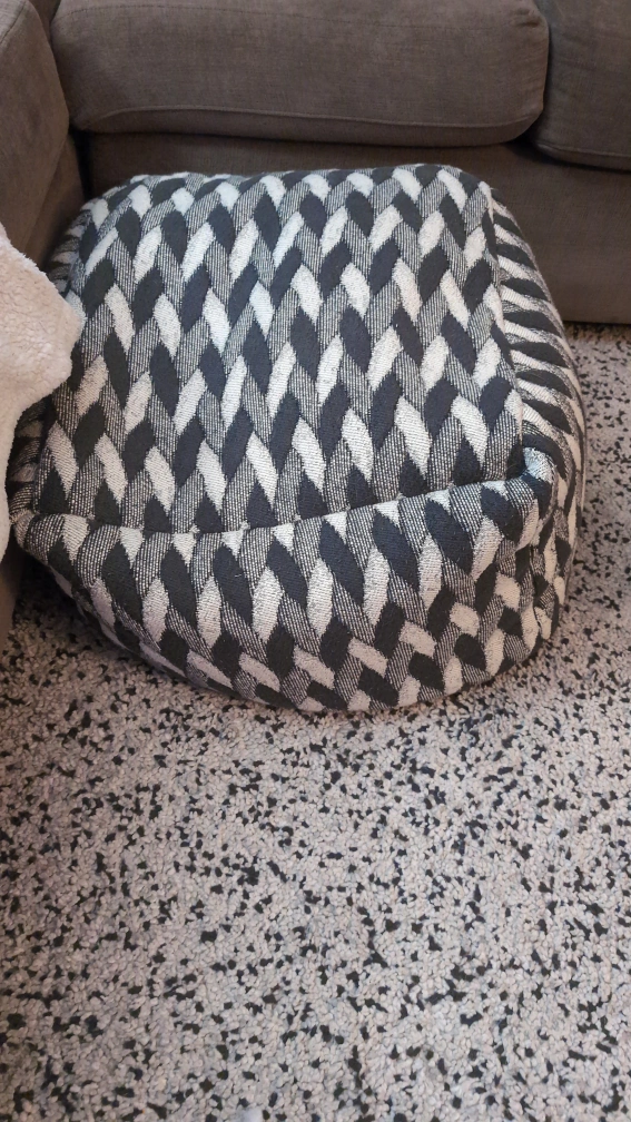 Black and white geometric floor cushion. Great for adding extra seating or just a stylish touch to your living room.
