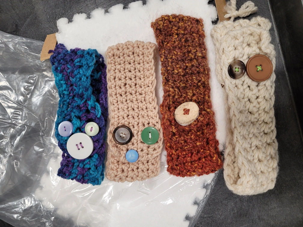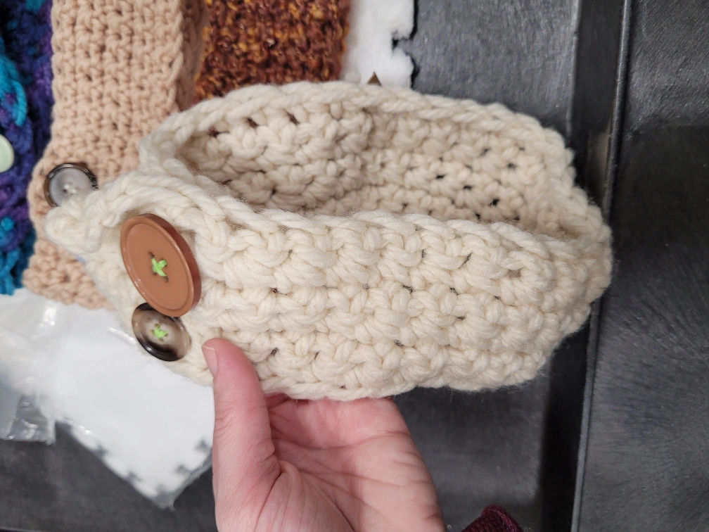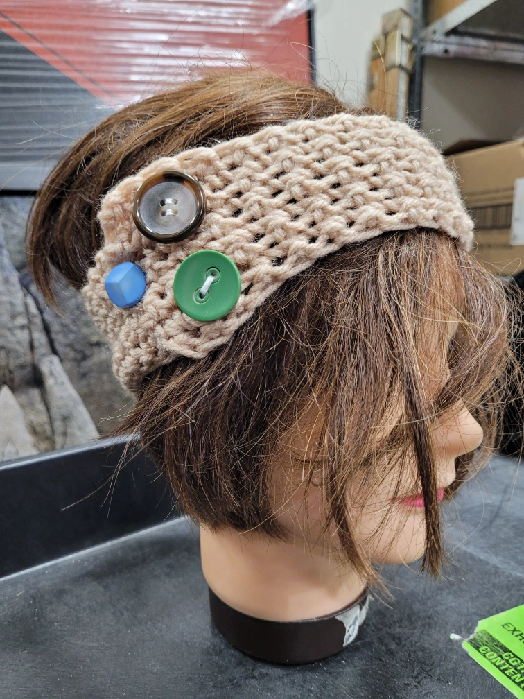 each is one of a kind made by me. Handmade crocheted headband with button. Great for keeping your ears warm and stylish. price is per piece. size is adjustable.