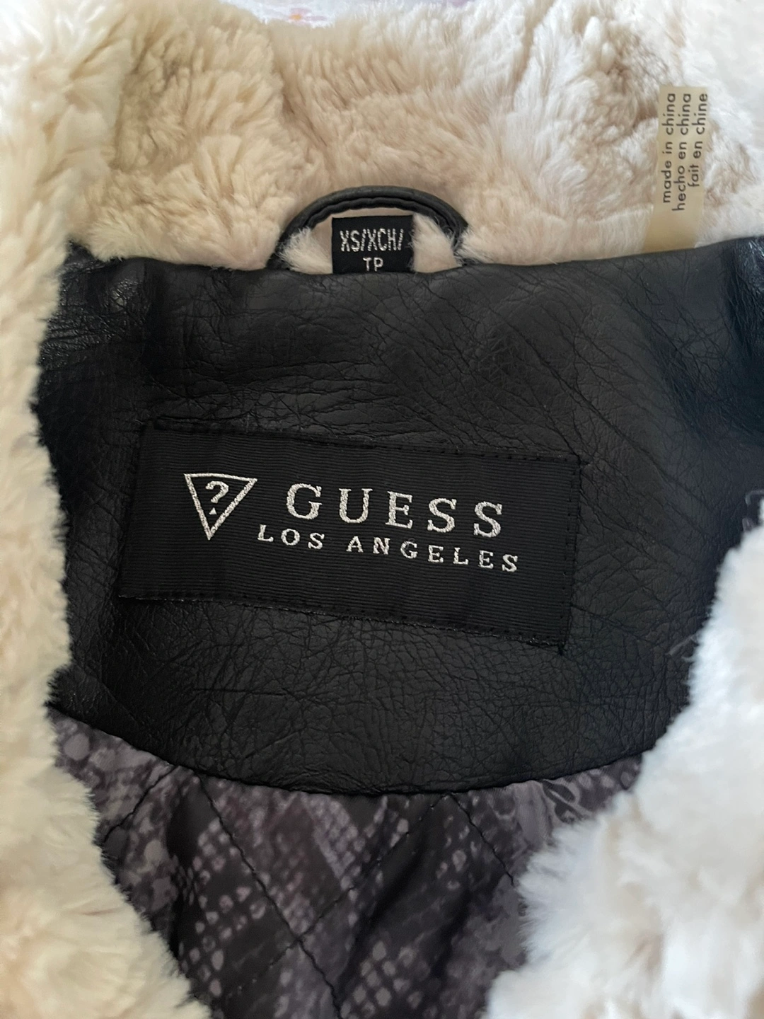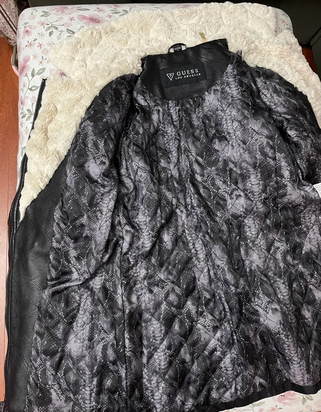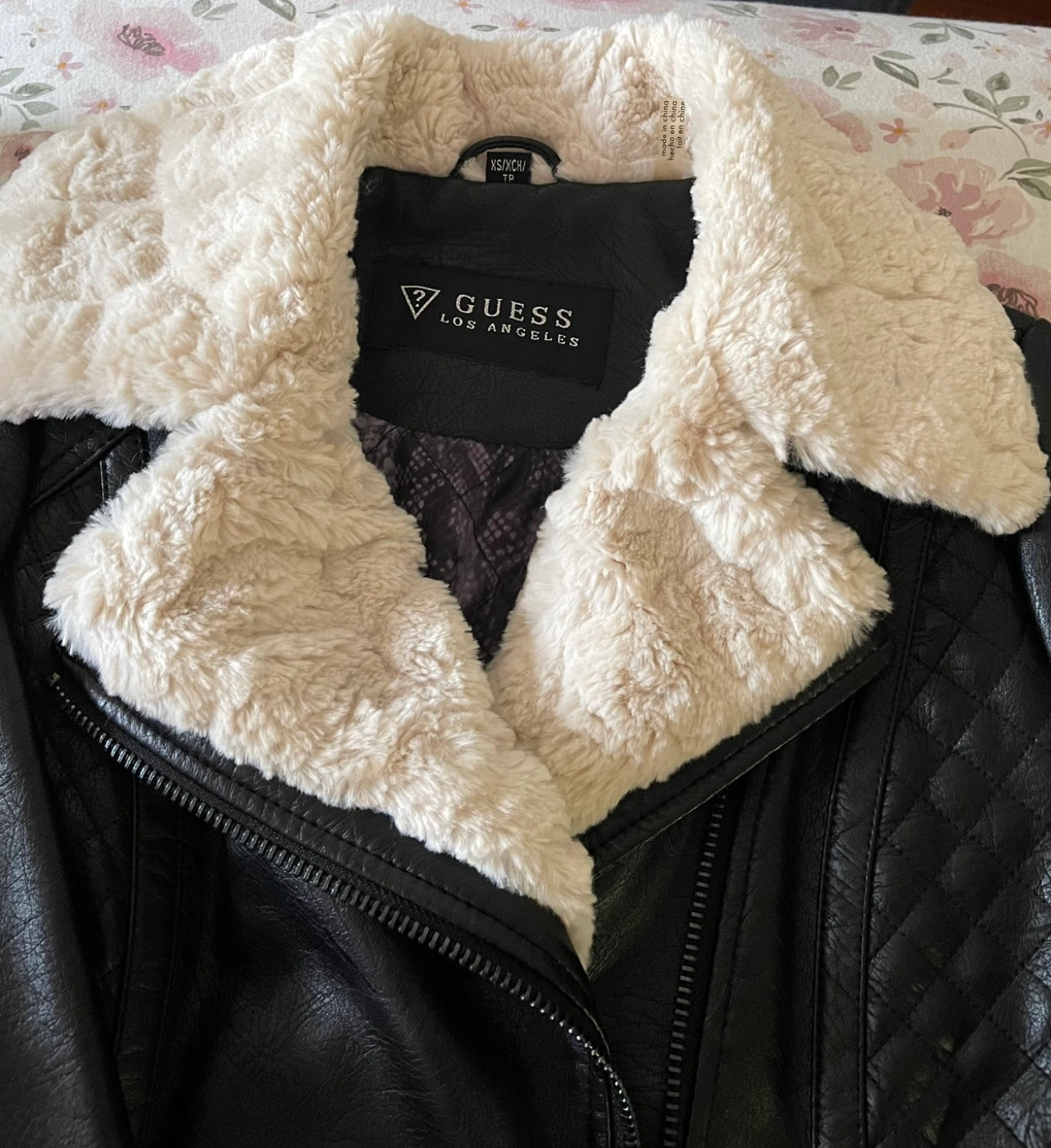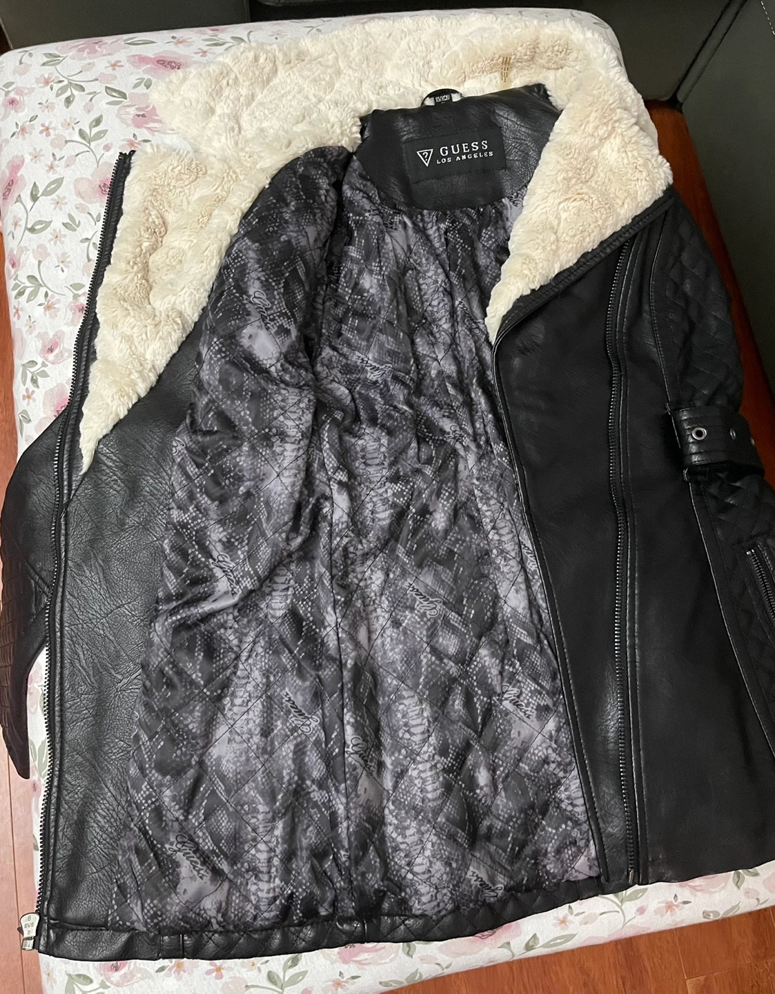 Guess Black Faux Leather Jacket with Faux Fur Collar