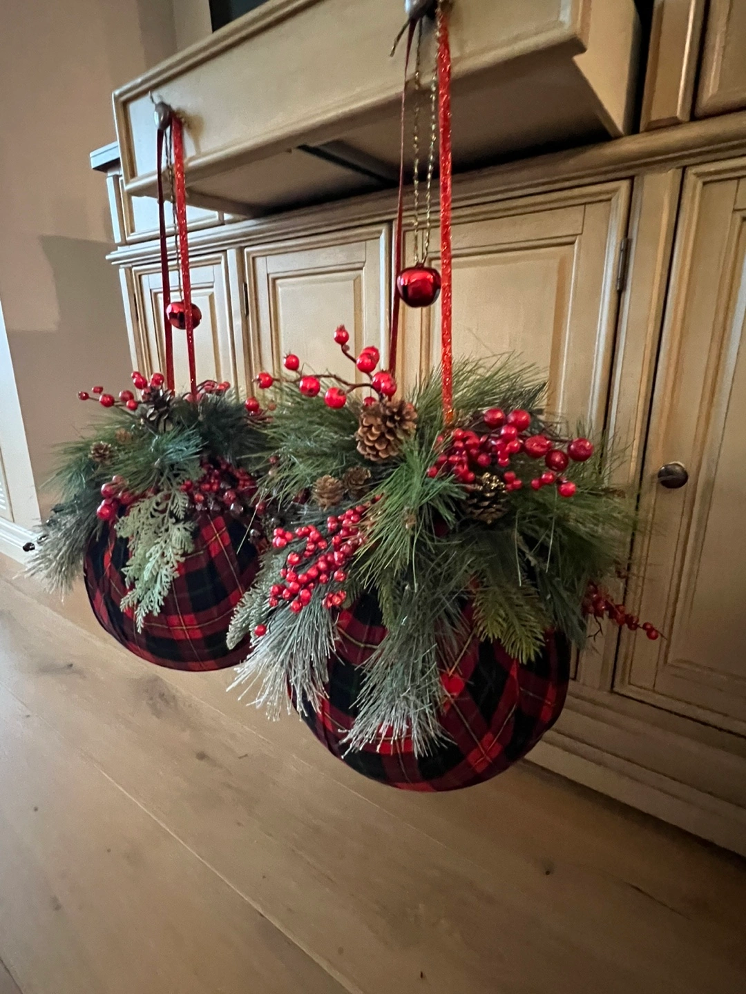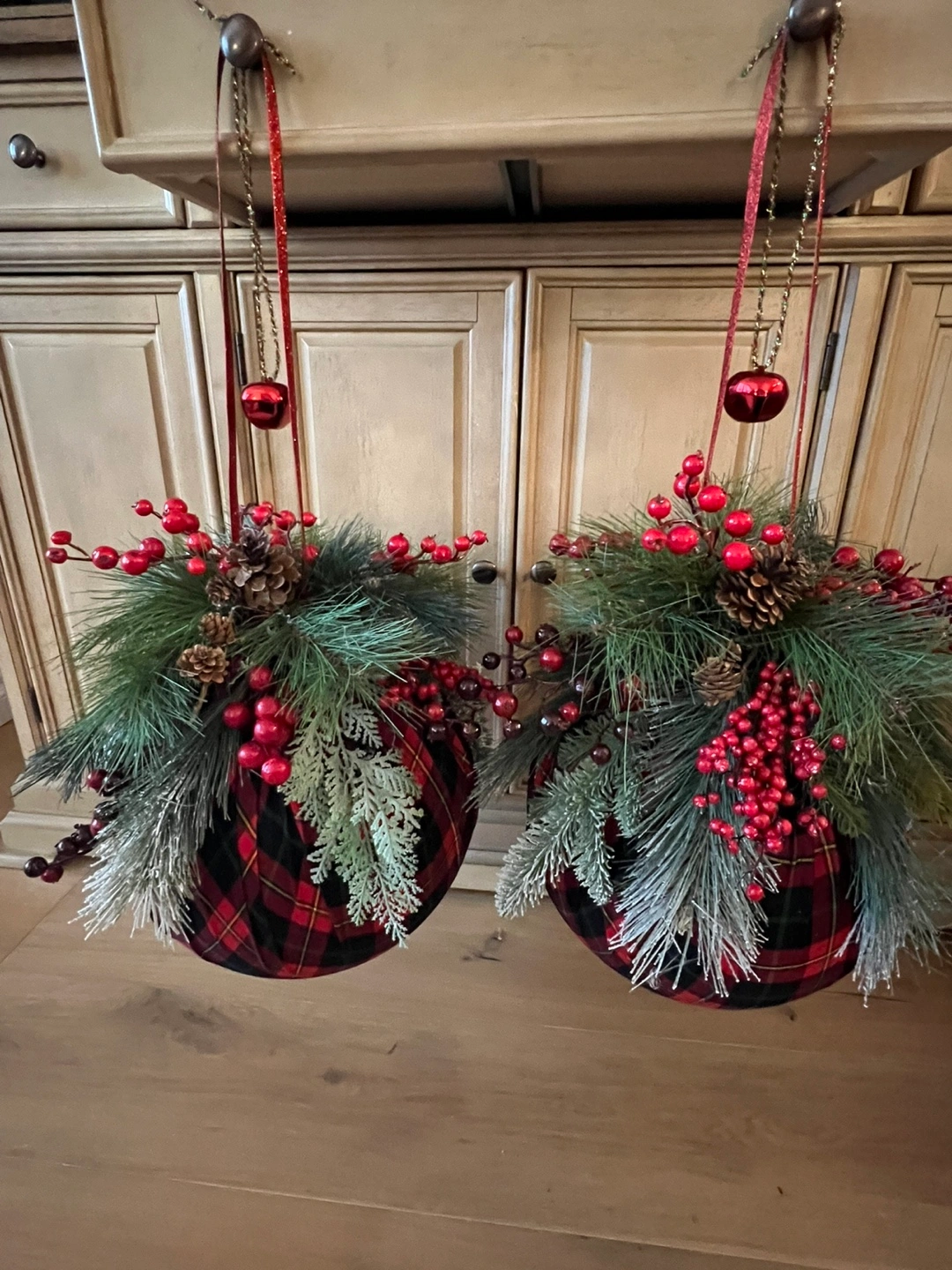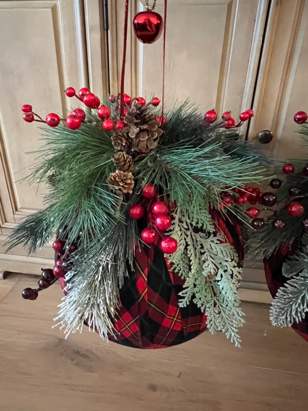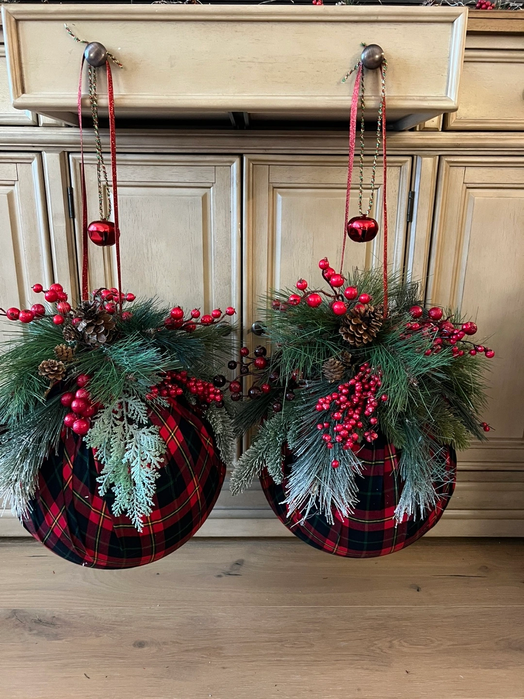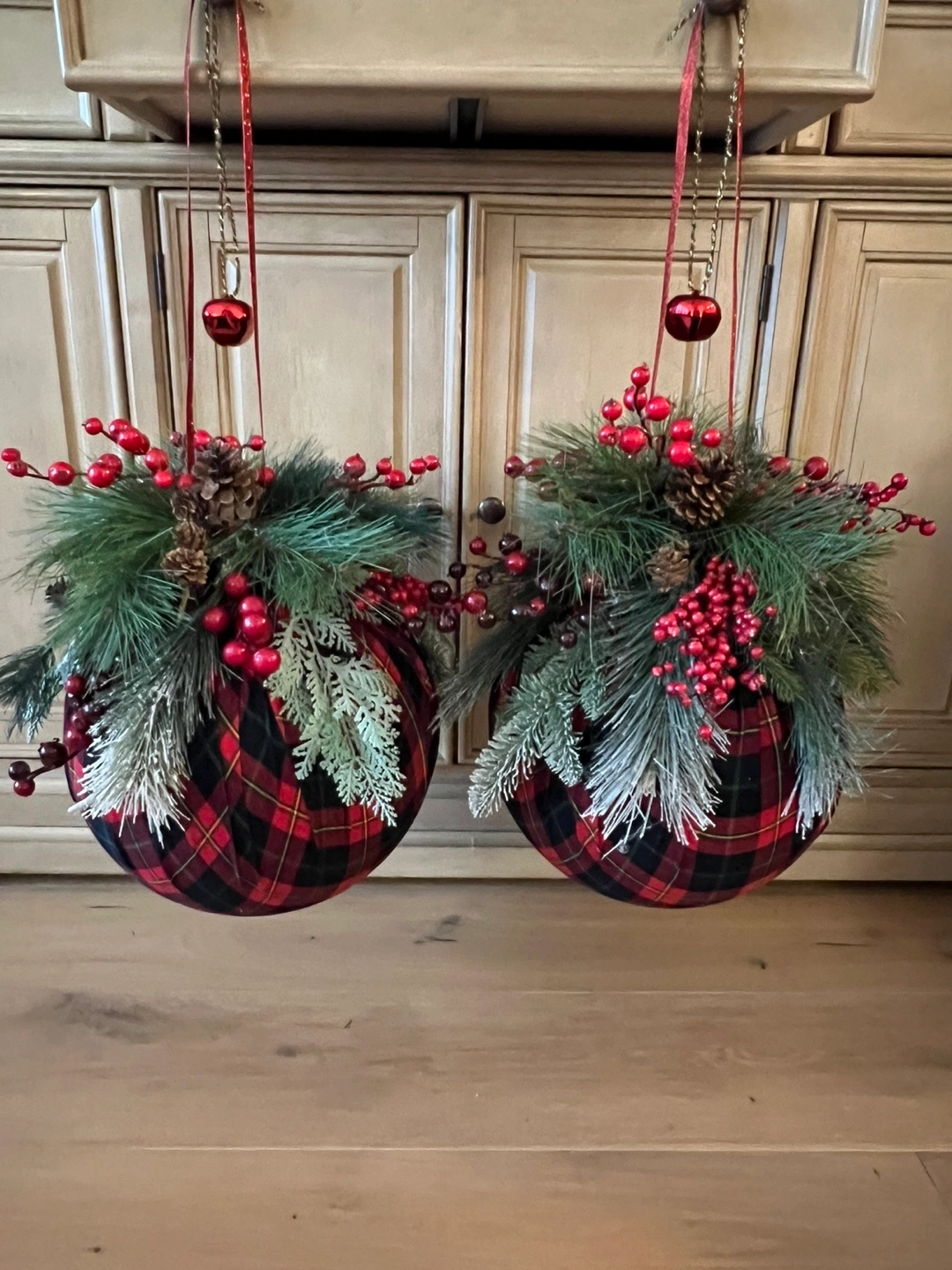 89Two handmade hanging Christmas balls. Each ball approx 36” around and 24” hanging height. Each ball covered in plaid material and all other items from Michaels craft store. Asking $35 each or both for $65 Smoke free pet free home located in south Whitby by the marina