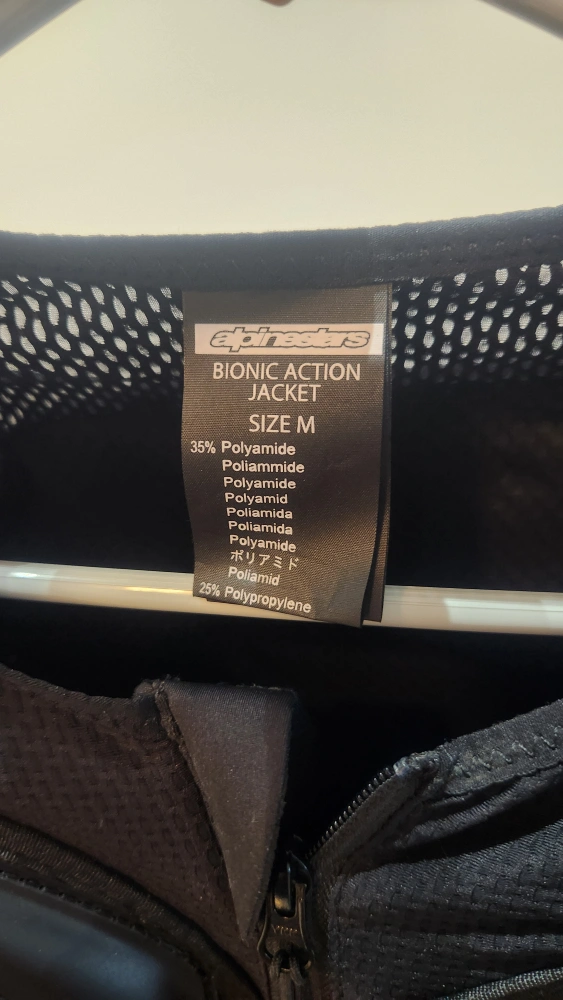 Black Bionic Action Jacket. Size M. Includes elbow, shoulder, and back protection.