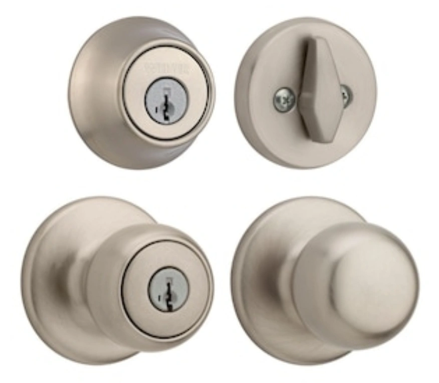 1 Set of Door Knobs (Interior and Exterior) and 1 Deadbolt, Latches, Strike, Screws, SmartKey Tool, Keys, Manual