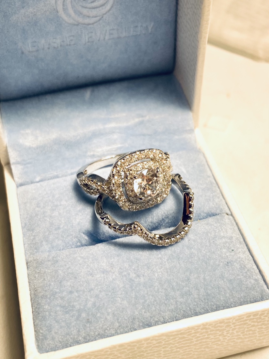 Brand new stamped 925 solid CZ engagement and band set