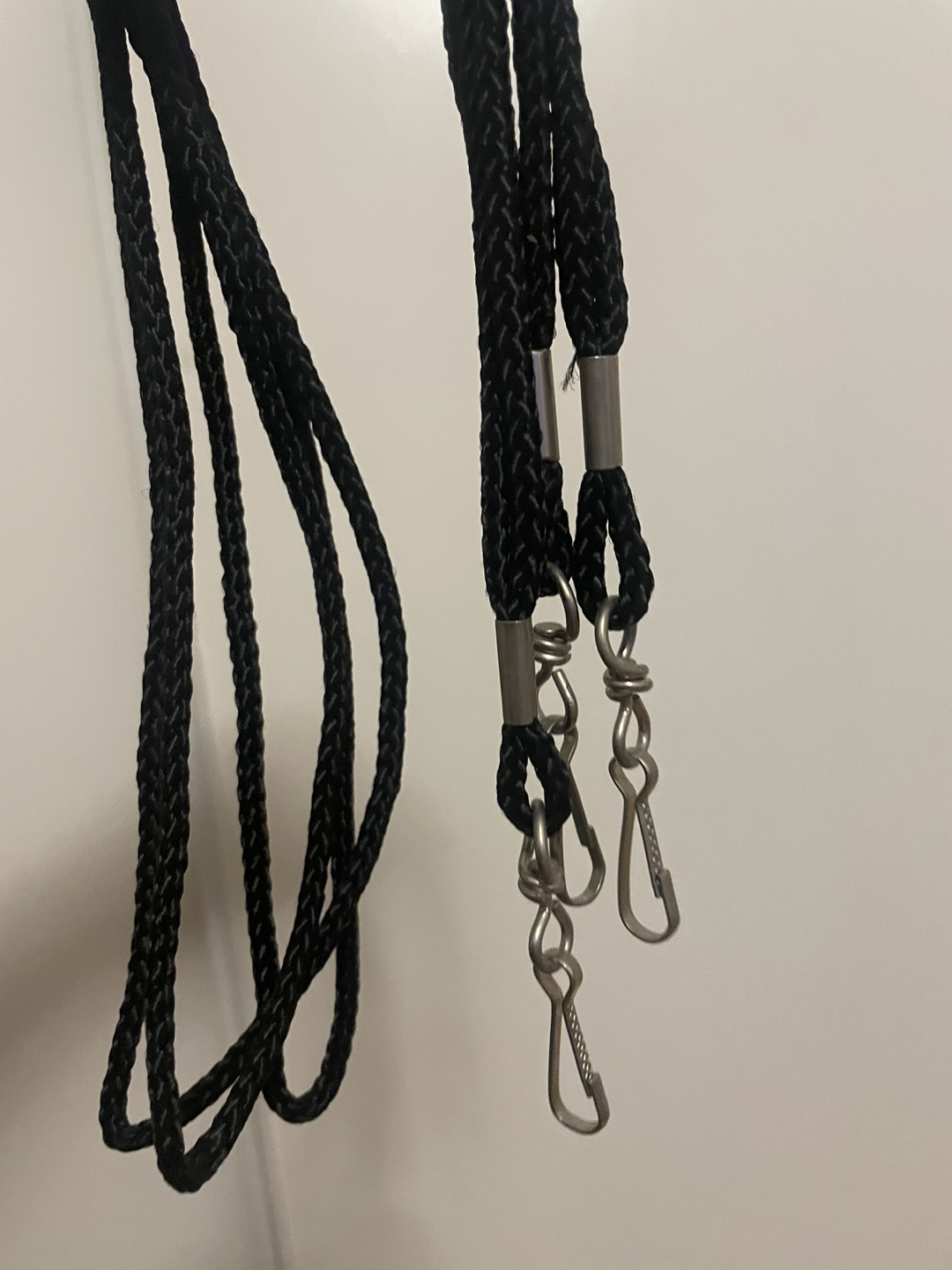 Three black lanyards with silver clips. Great for keys, ID badges, etc.