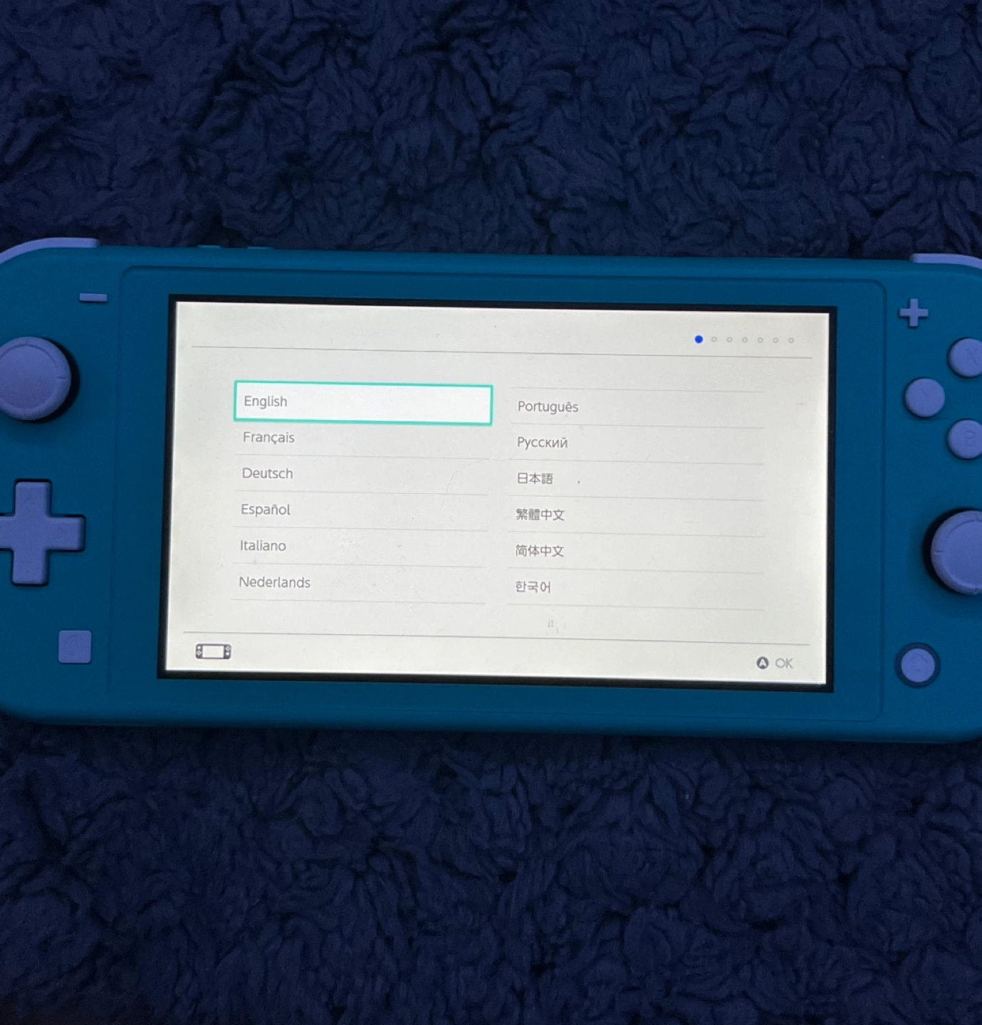 Turquoise Nintendo Switch Lite. Includes console and charger.