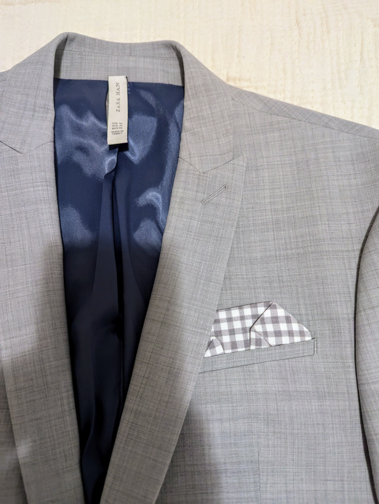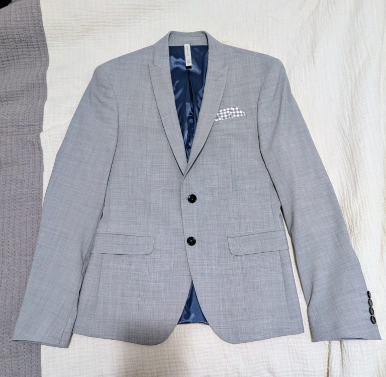 This handsome, high quality slim fit suit jacket belonged to my son. Hopefully the photos do it justice.