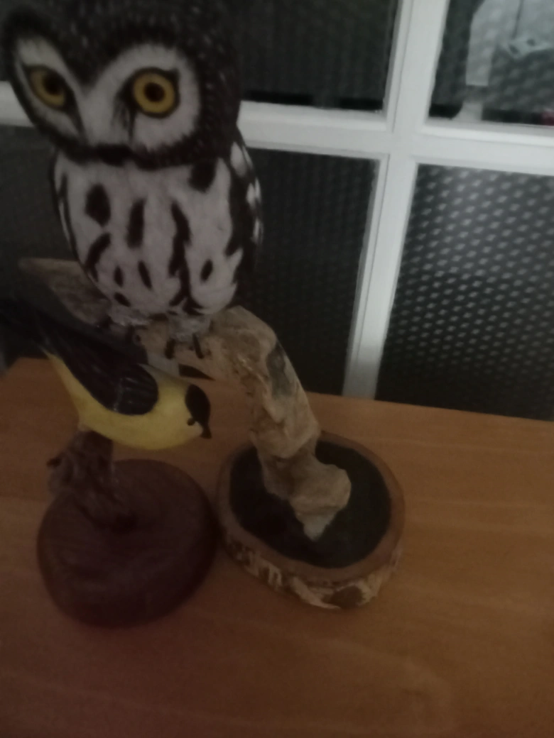 Hand Carved & Painted Owl & Yellow Goldfinch