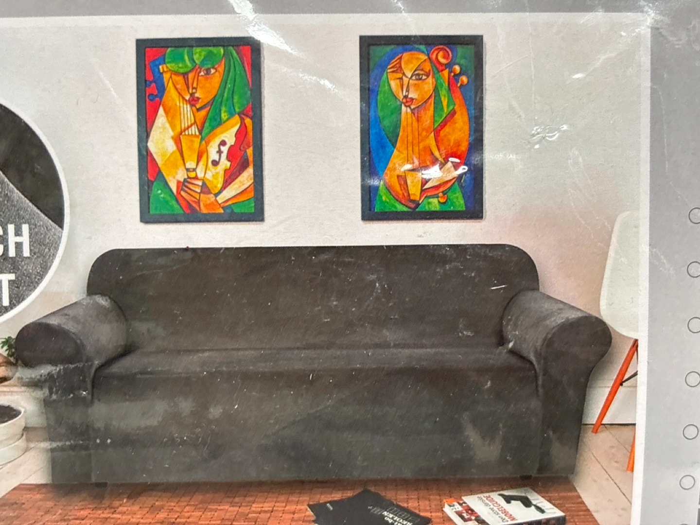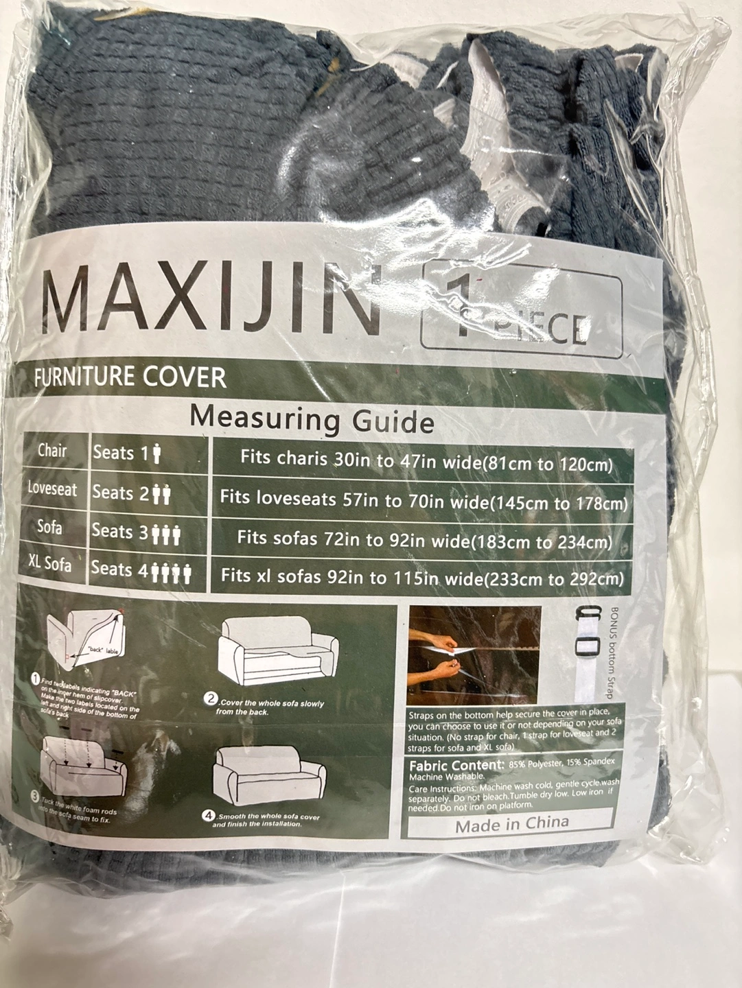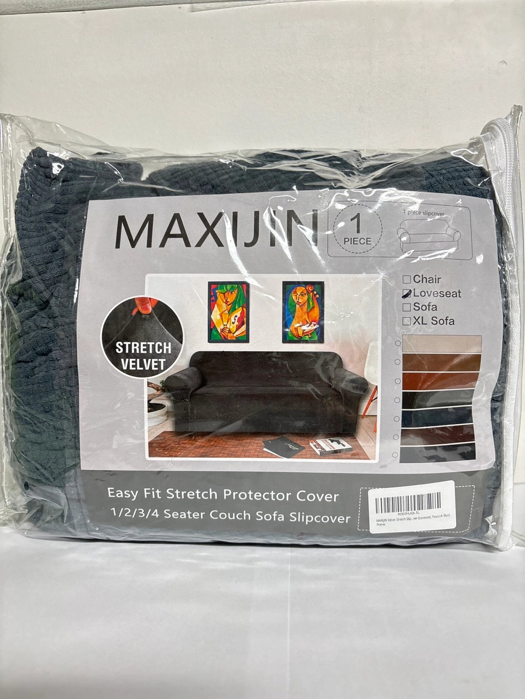 Easy fit stretch loveseat protector cover. 1/2 seater slipcover in dark gray colour.