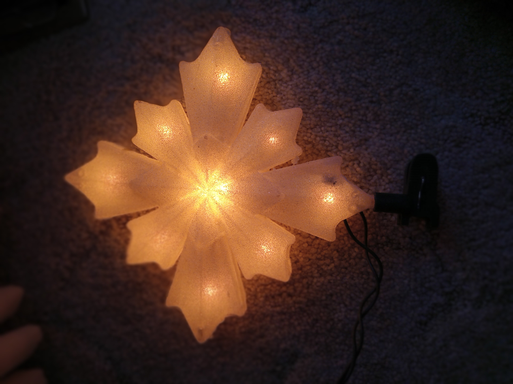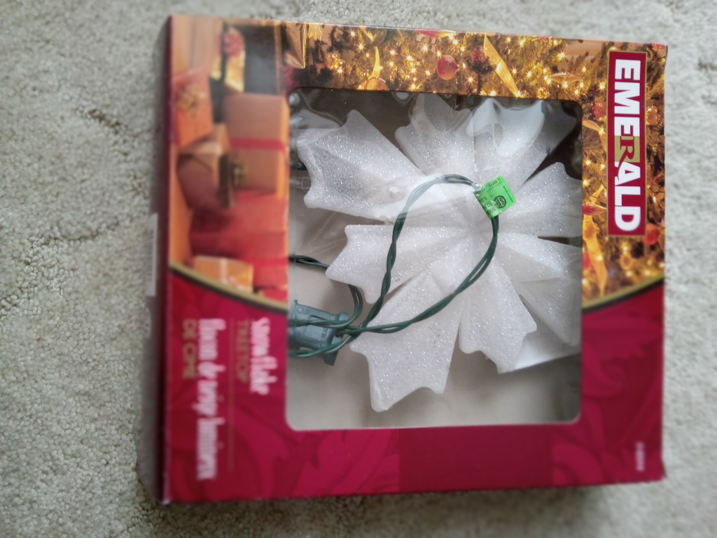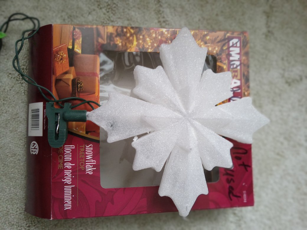 White snowflake treetop with lights. Comes with original box.