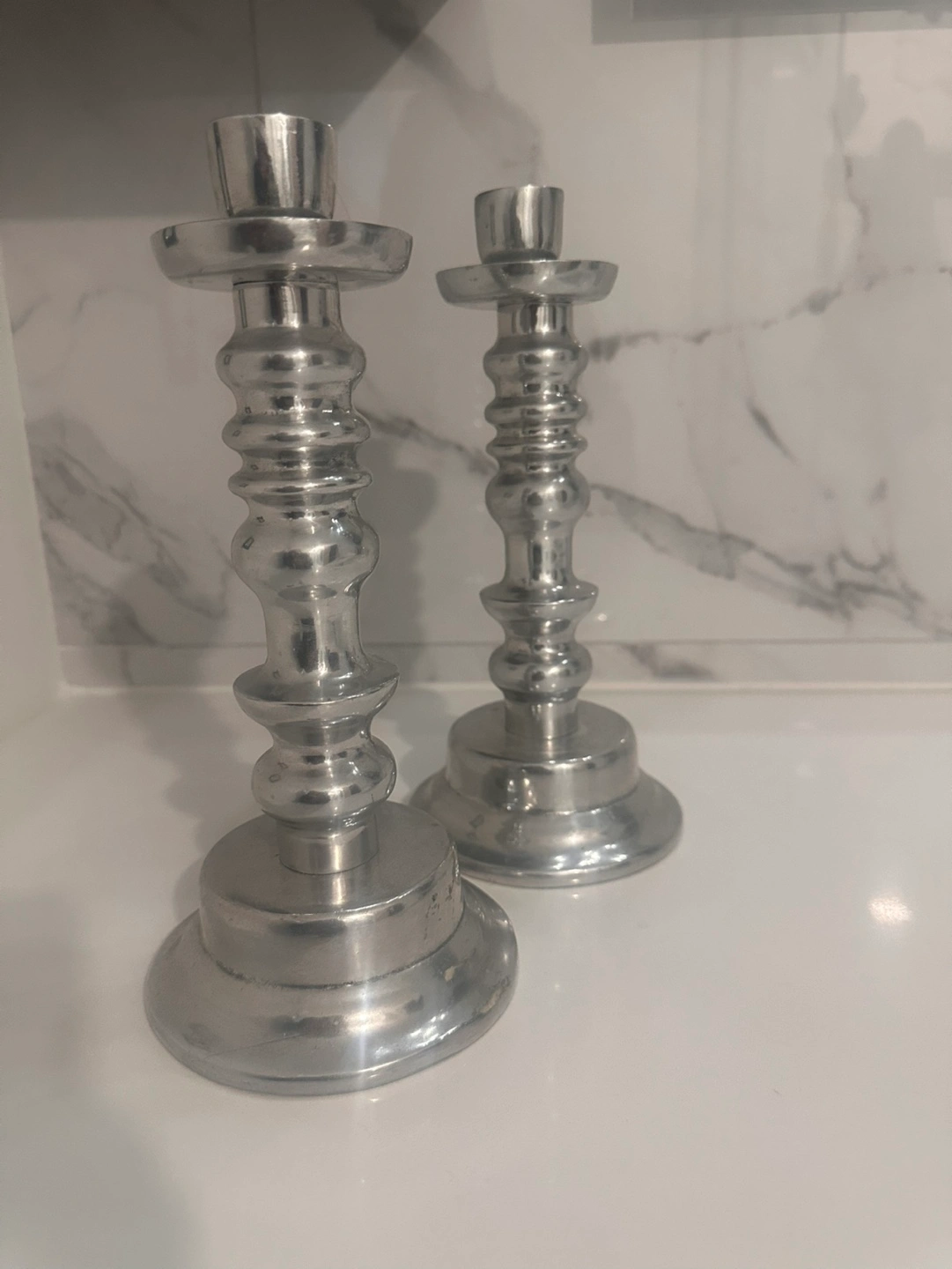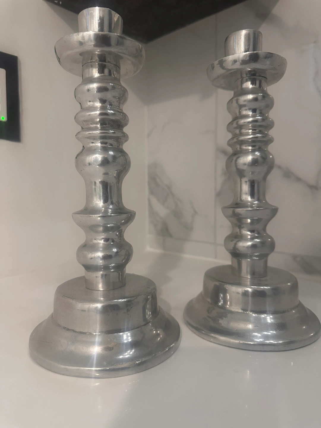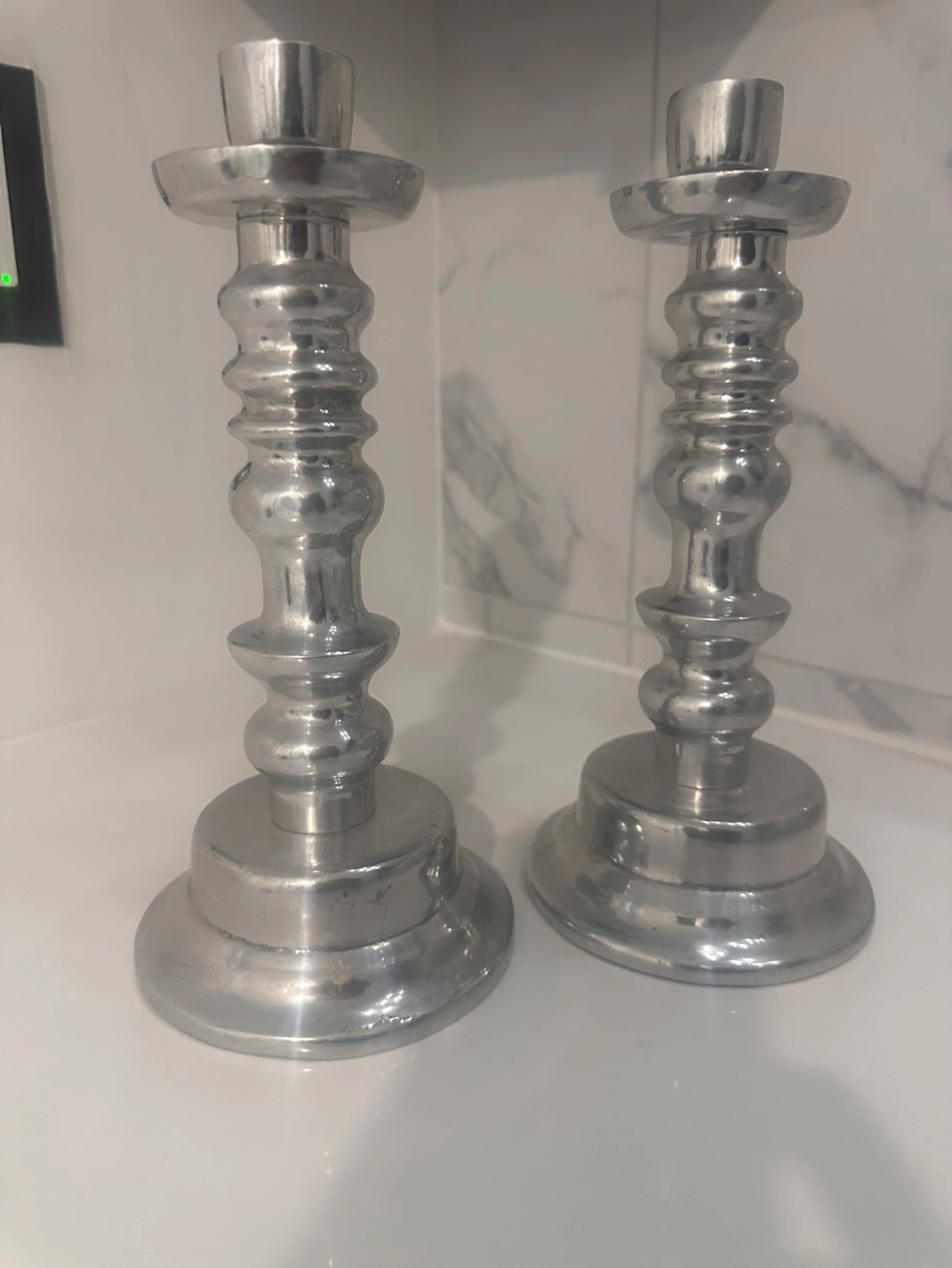 Set of two silver candle holders. Tall and decorative. Cash only please. Available for pick up.