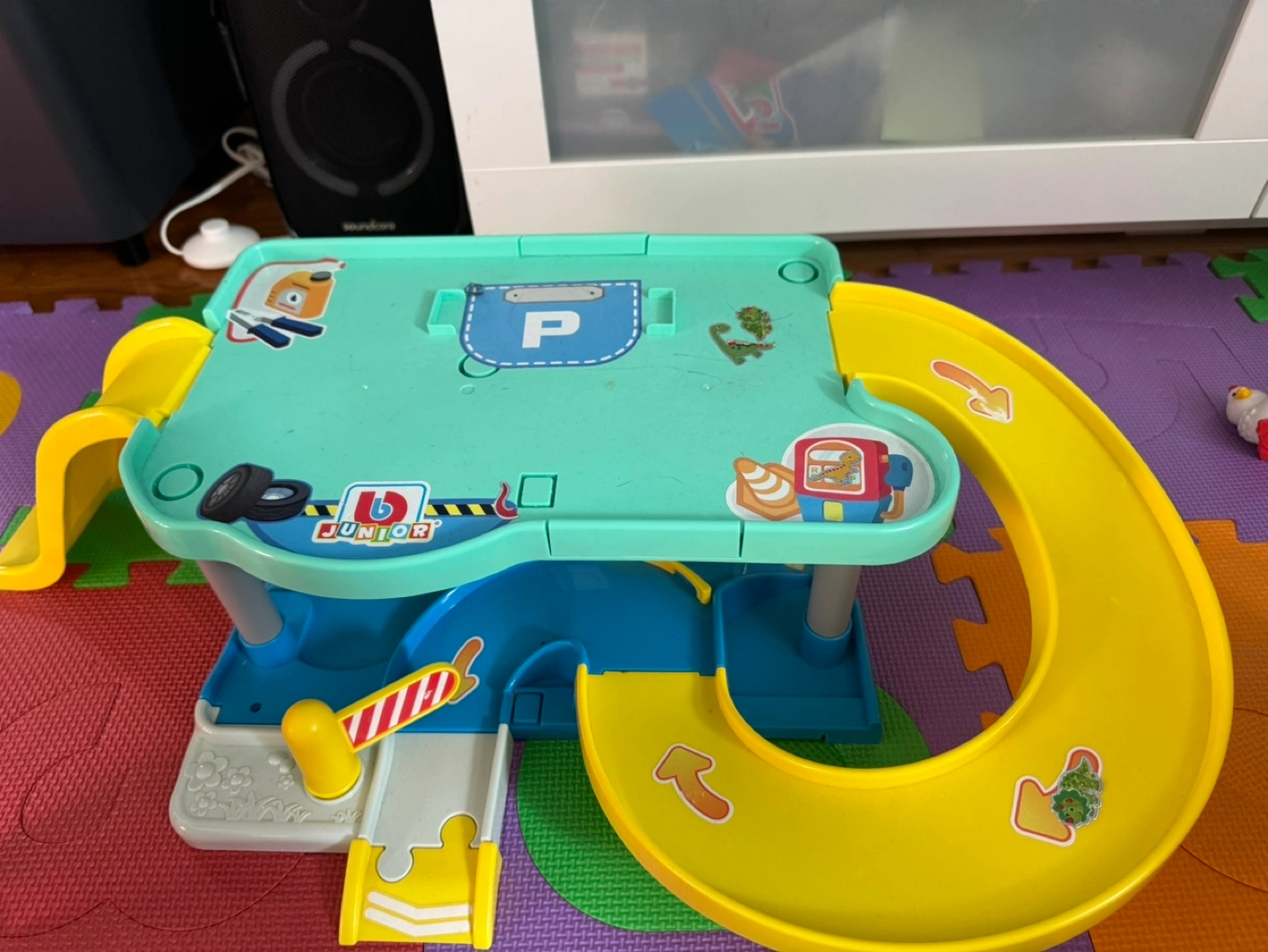 153Little Tikes Junior Garage with ramps and parking spot. Includes a gas pump and a gate.