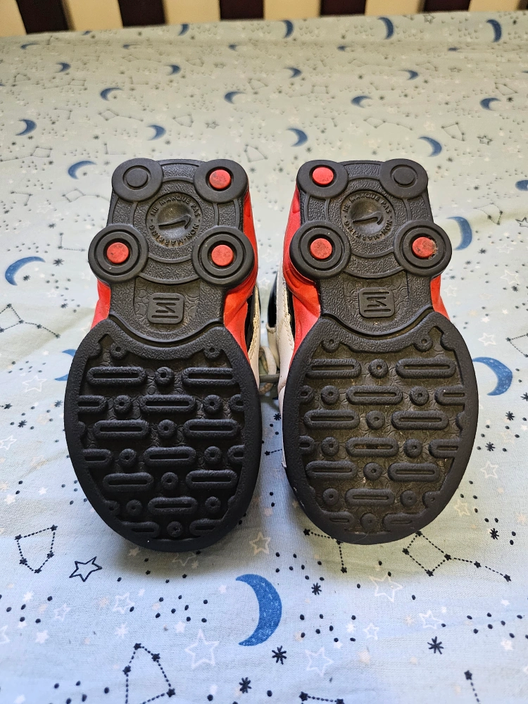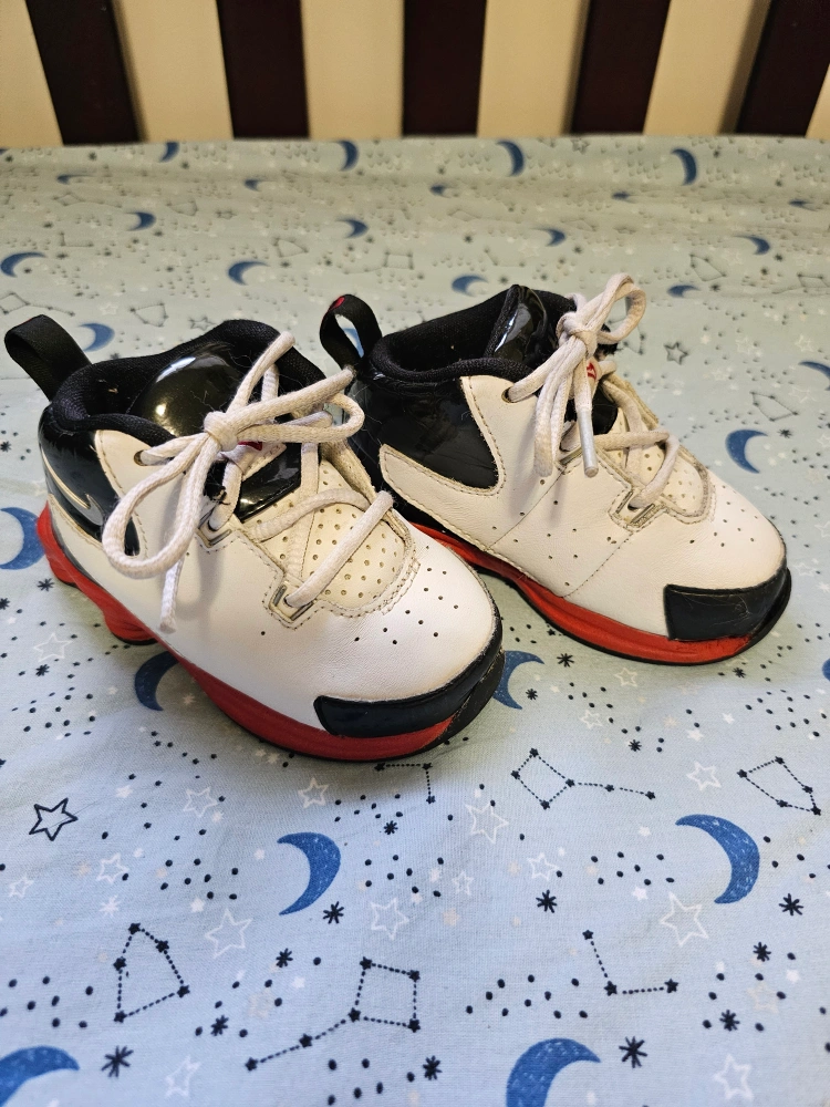 294White, black, and red Nike Air Max Toddler shoes. Size 10.5C. Lace up. No box. Used for indoor play. Keep your little one stable and safe as they walk and run around the house π π€ΈββοΈπββοΈπ¨π Doesn't hurt that they are also oh so cute! π P.S. Discounts offered with multiple purchases