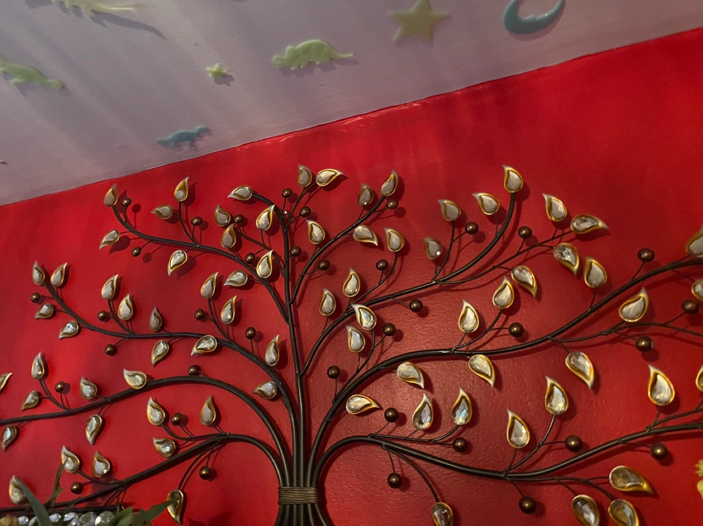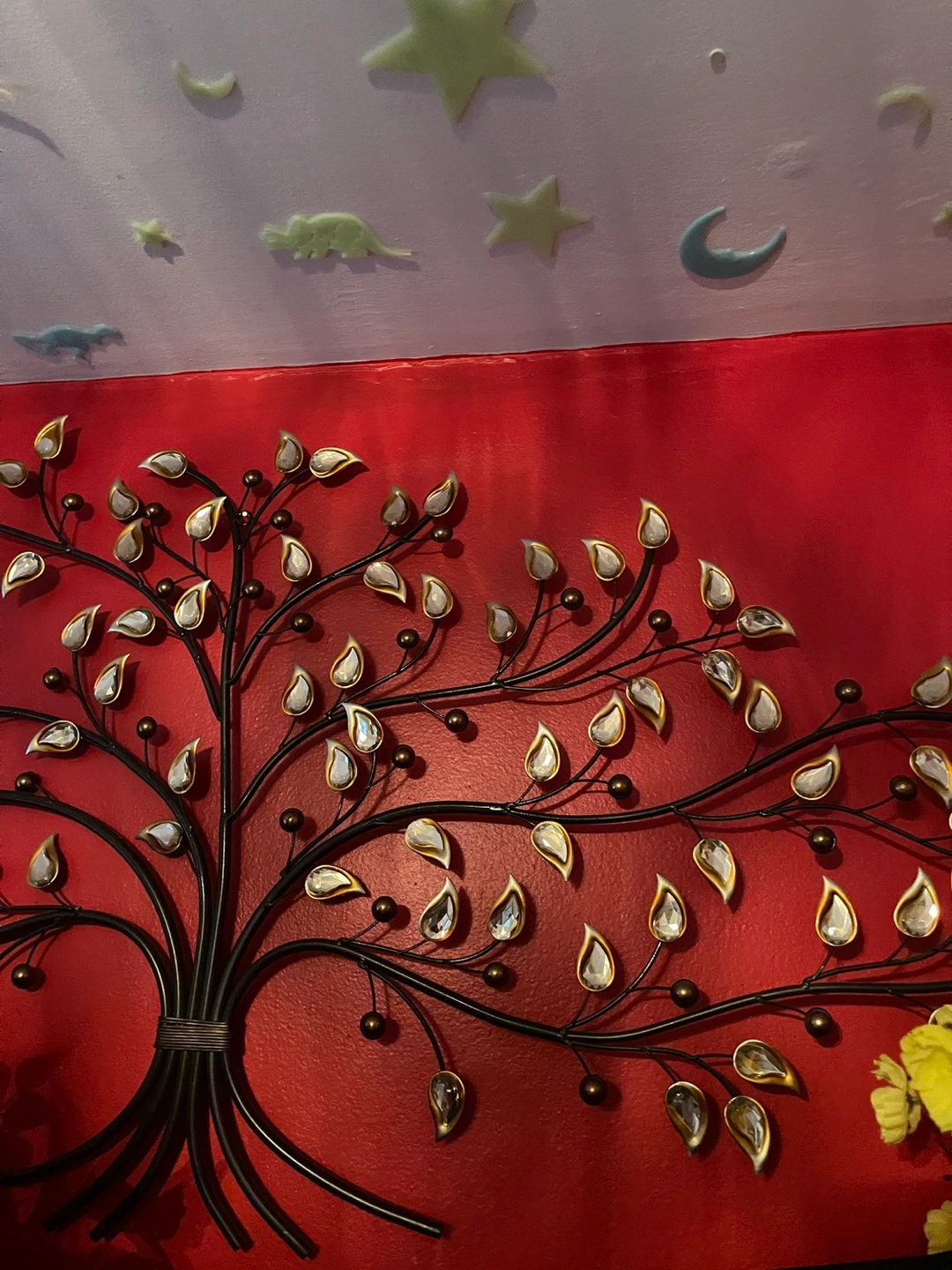 84Metal tree wall decor with gold and clear . Measures approximately 30 inches wide. Pick up only