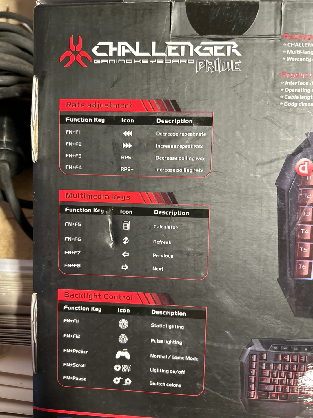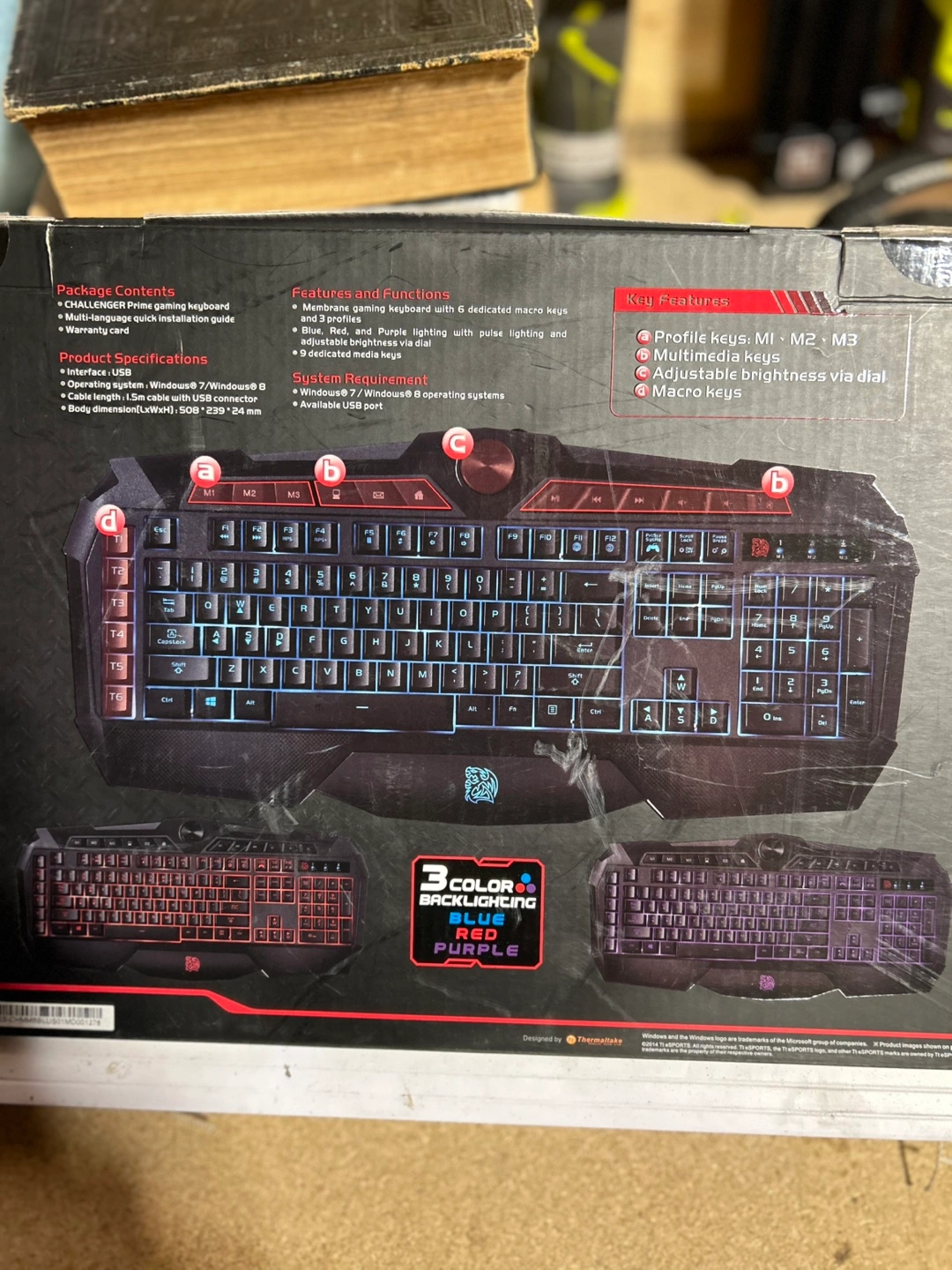 42Wired gaming keyboard with 6 dedicated macro keys, 9 dedicated media keys, 3 colour backlighting. Includes instruction guide and warranty card.