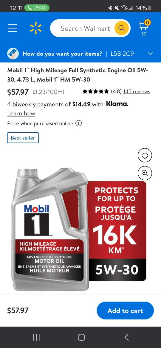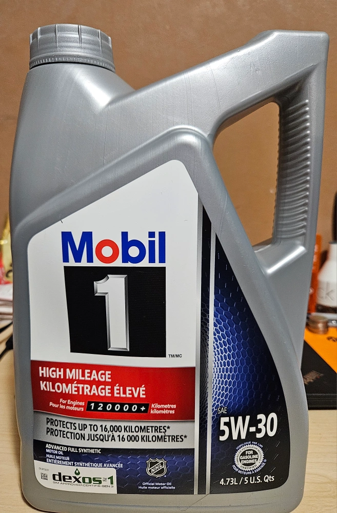 102Mobil 1 Advanced full synthetic high mileage 5w-30 Full synthetic made for cars with over 120 000 km Retails for $65 with tax I'm selling for $40