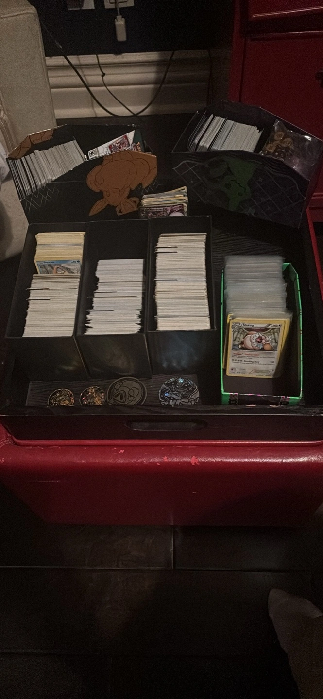 Pokemon Bulk. Collection of Commons organized by type, trainer and energy. One stack just holos and reverse. Some code cards and random coins + free tins.