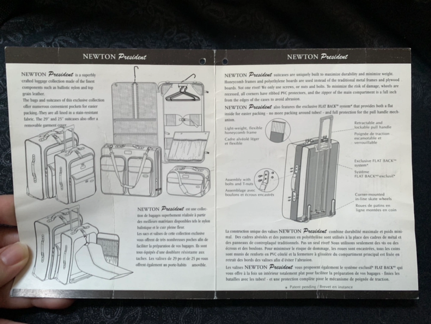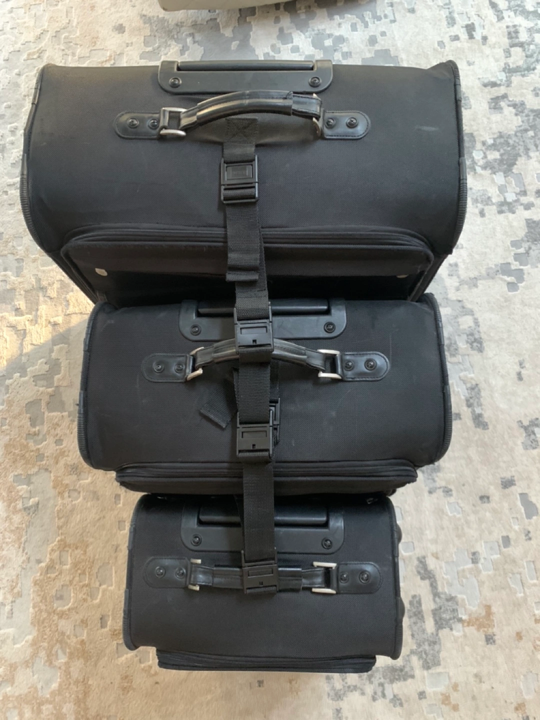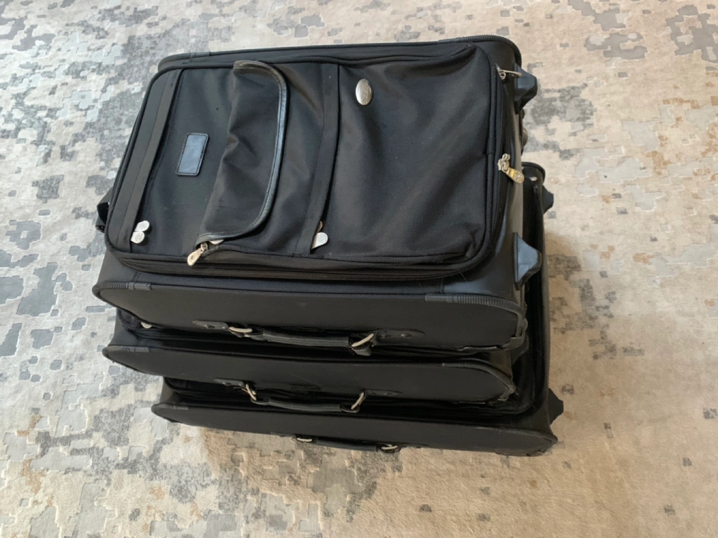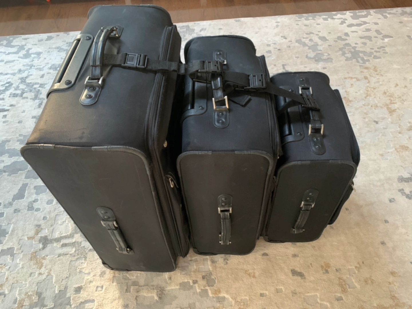 511Three piece Newton President luggage set. My parents don’t need it anymore. Each piece can be connected to allow you to pull 3 pieces with one handle. Comes with a lifetime manufactures warranty. Large and medium bag include a place to hang your formal clothing. Large: 30x22x11.5 (inches) Medium: 26x18.5x10.5 (inches) Small: 22x15x9 (inches) Bags fit inside of each other for easy storage. Selling all three pieces as a set.