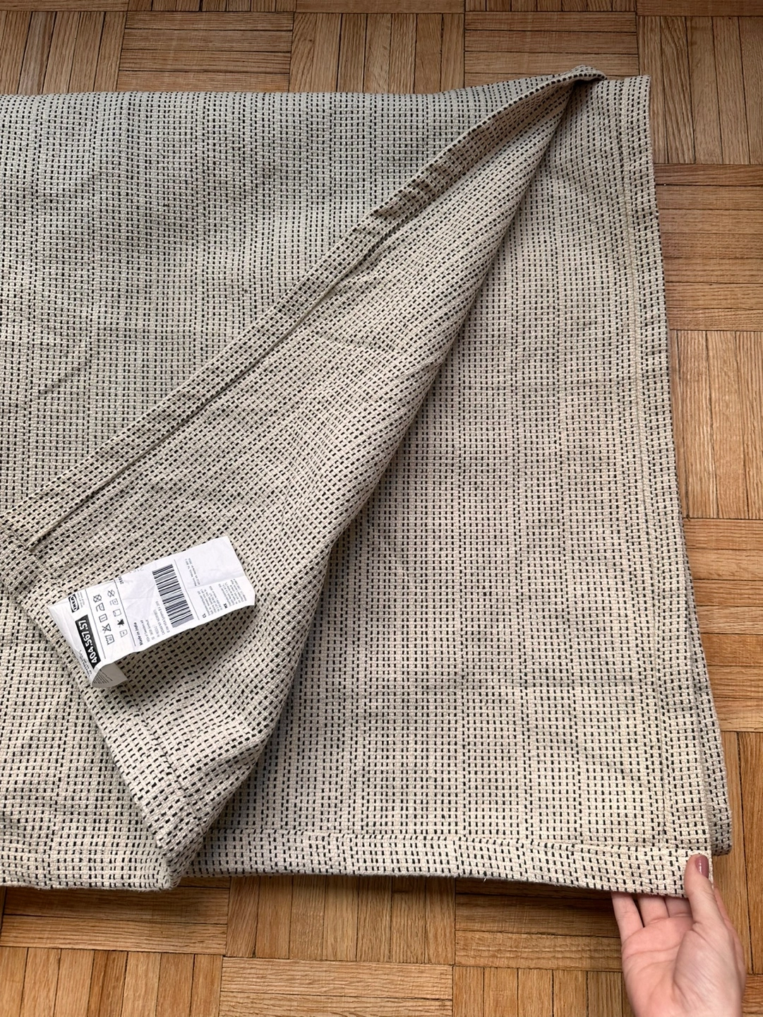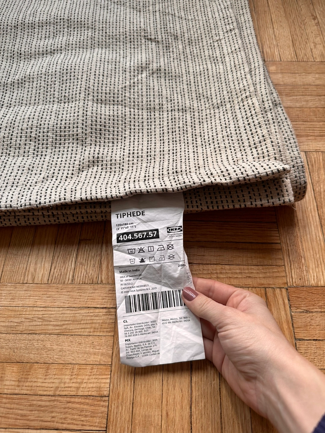 A versatile rug made from recycled cotton, in colors that fit right in. It’s perfect under your dining table, in the living room or by your bed. When it’s time for a fresh-up, just put it in the wash. natural/black color very minimalistic 100% cotton. Retail $25 plus taxes. I give it for 15. https://www.ikea.com/ca/en/p/tiphede-rug-flatwoven-natural-black-40456757/