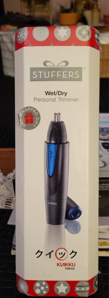 Personal electric trimmer for both nose and ear hair. Built-in LED light for easy visibility. Wet or dry feature allows for easy cleaning. Uses 1xAA battery (not included). Gift Ready, great Stocking Stuffer
