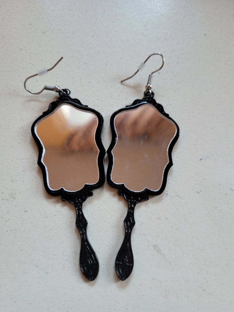 Black Mirror Hand Mirror Earrings