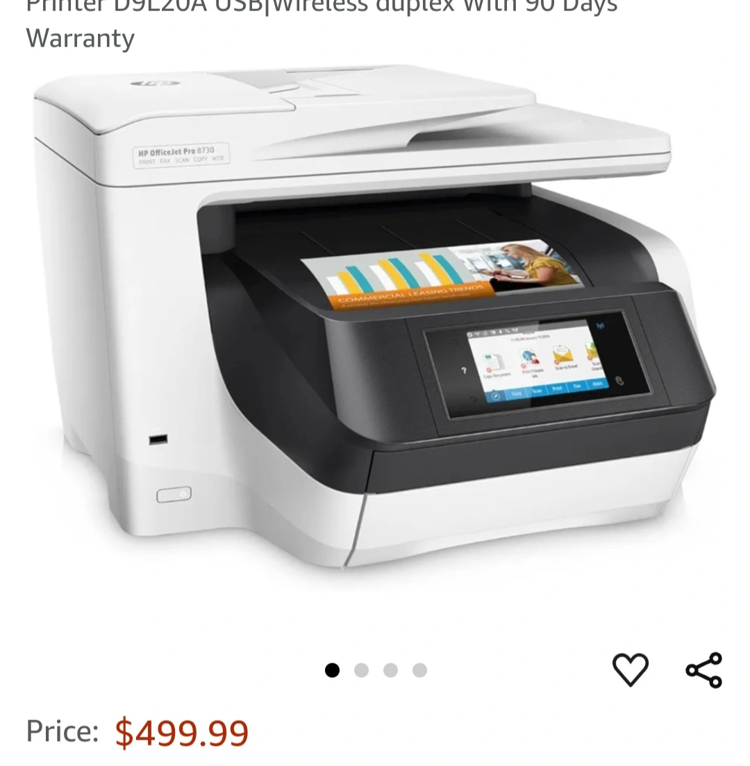 HP Officejet Pro 8720 All-in-One Colour Inkjet Printer D9L20A USB(Wireless duplex) print, fax, scan, copy. Includes black and colour ink cartridge and the power cord .Wireless and USB connectivity.