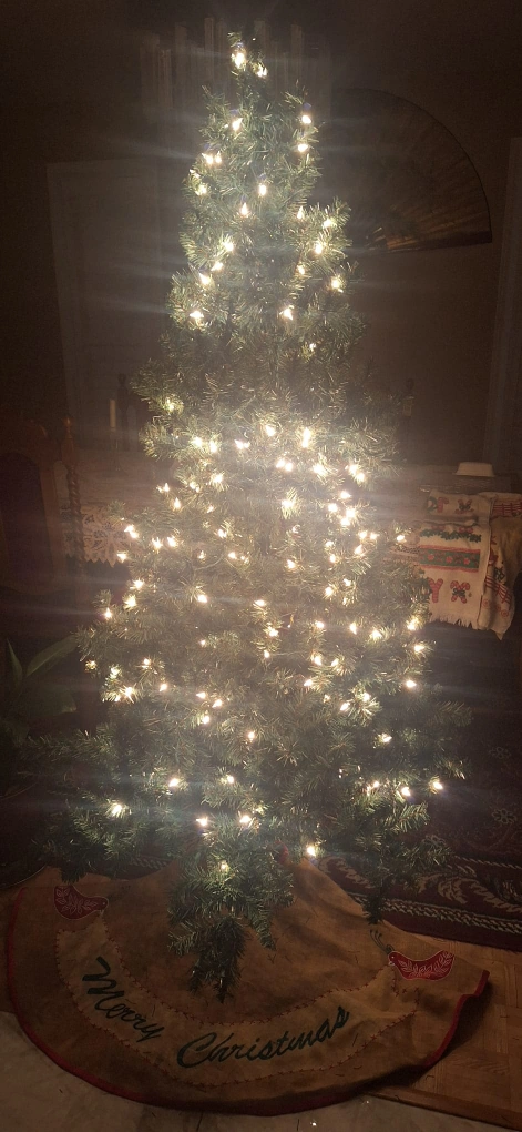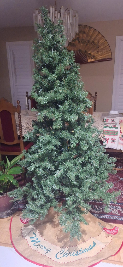 Artificial Christmas tree🎄 6 feet tall. Pre-lit with a few bulbs out. Selling because the stand broke and we already have another tree.