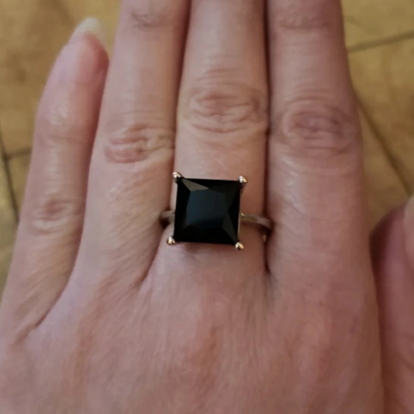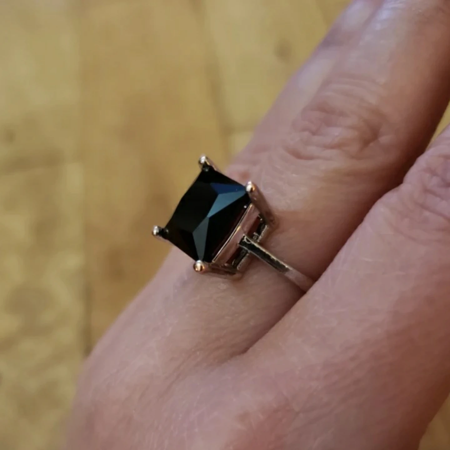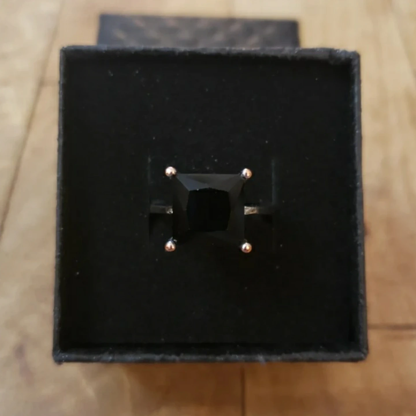 925 sterling silver black onyx ring with square-shaped stone. Comes in a black gift box.