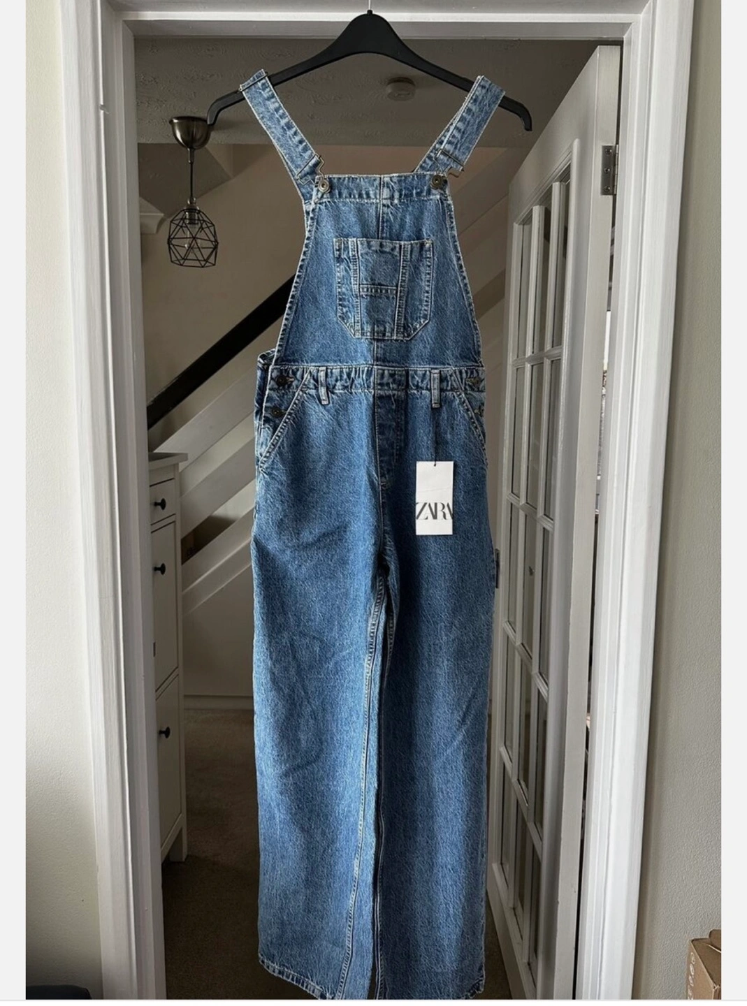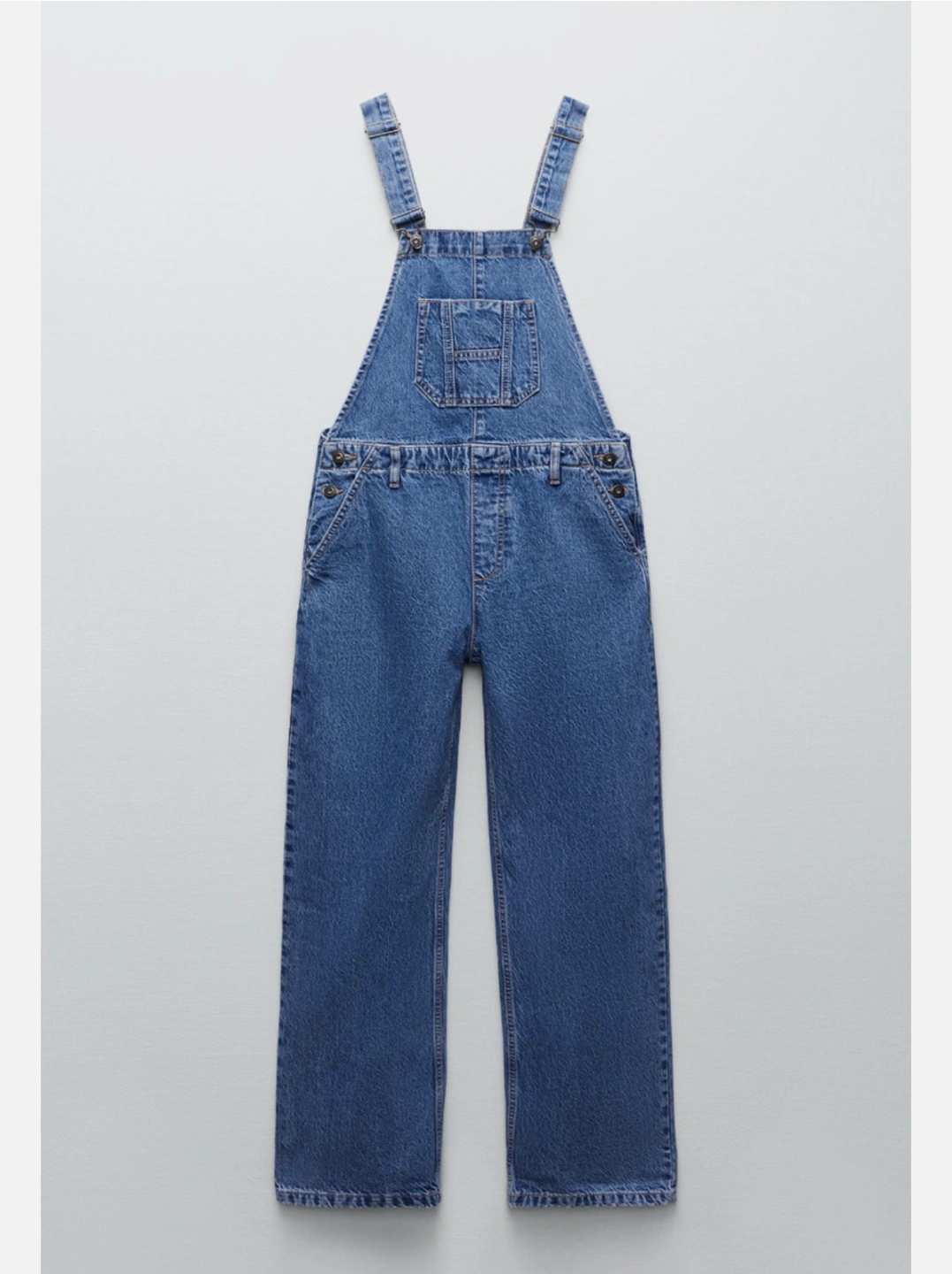 58Blue denim overalls with adjustable straps. Wide-leg style. New with tags.