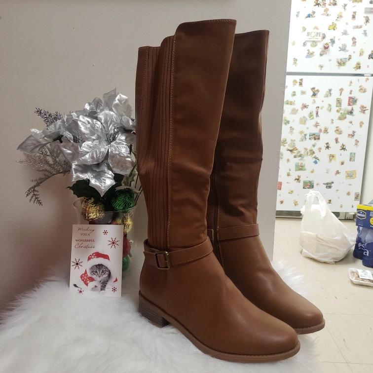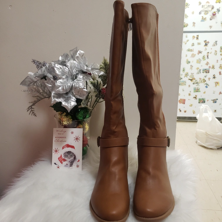 Brand new Women's Brown knee high boots with a buckle detail. Side zipper. Low heel.Size 8.5 never used for sale $75 for more info contact me anytime ๐