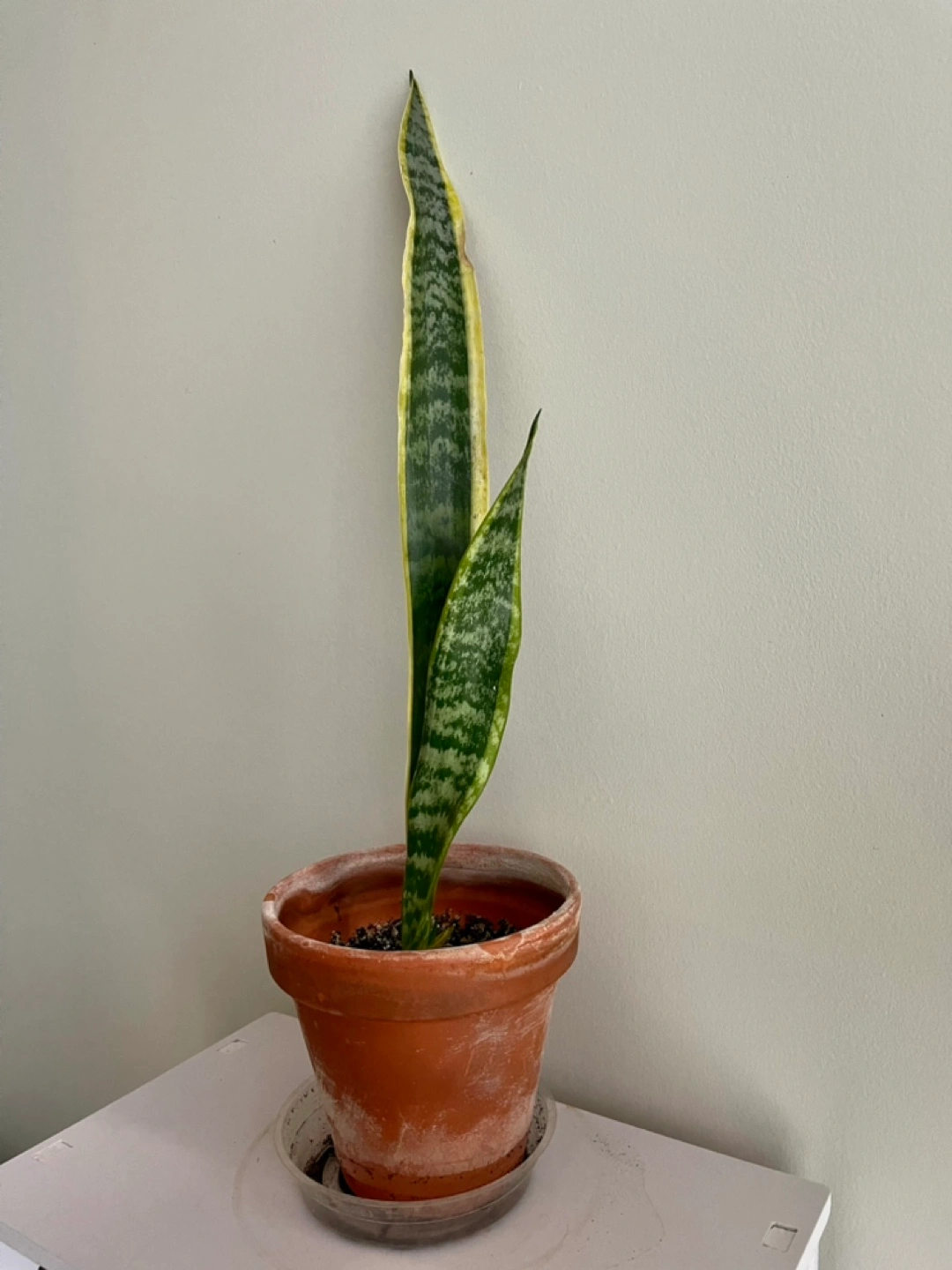427Snake plant Home grown and propogated Smoke free, pet free home 22” length of the tallest leaf, second one looks about half of that. And new growth as well. Loves a warm sunny spot but very tolerant of low light conditions. Minimal water needs, maybe once every 2-4 weeks. @n.plants_ on IG for more plants!