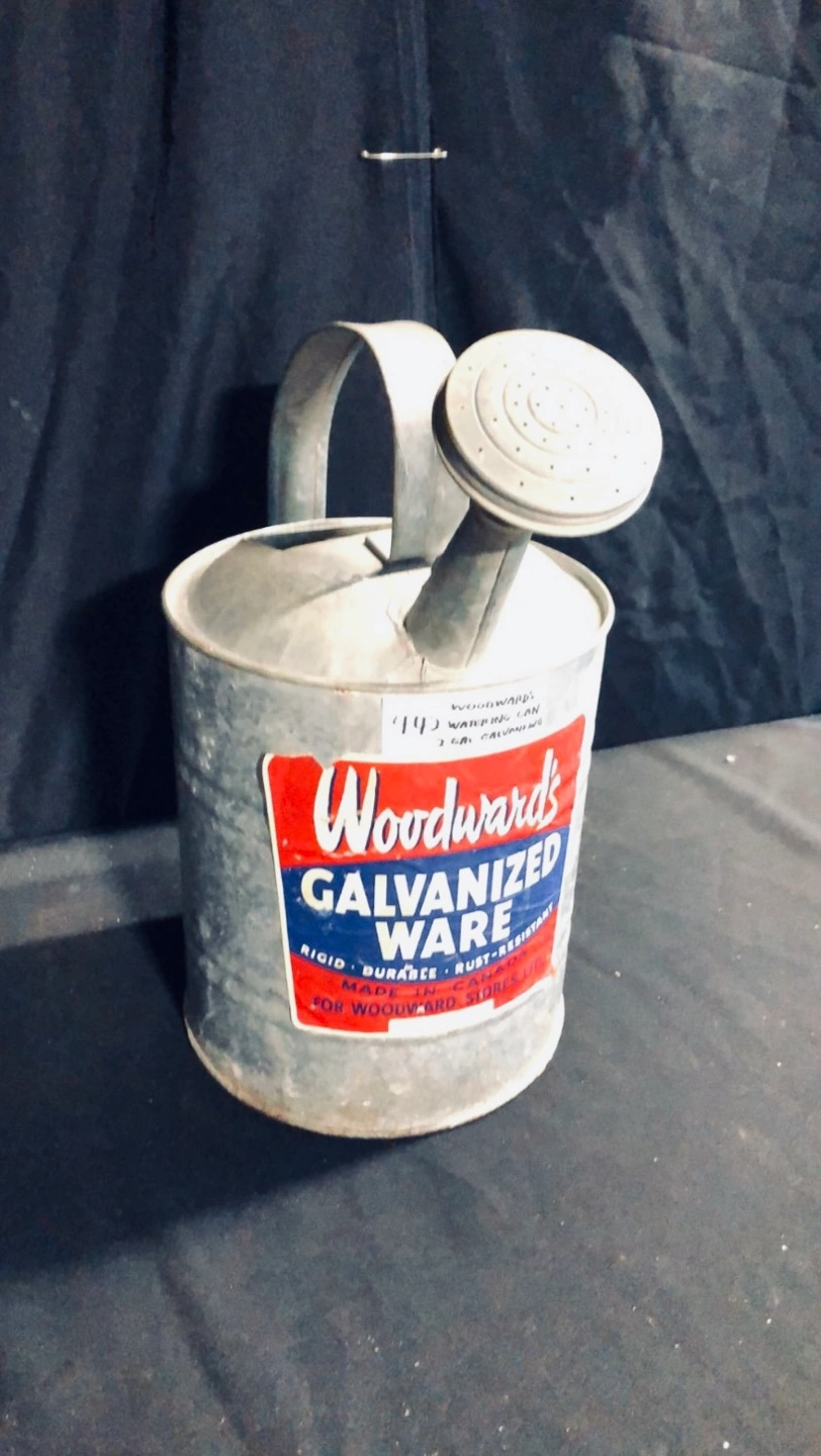 75Vintage galvanized watering can. Made by Woodward's in Canada. No leaks or large dents