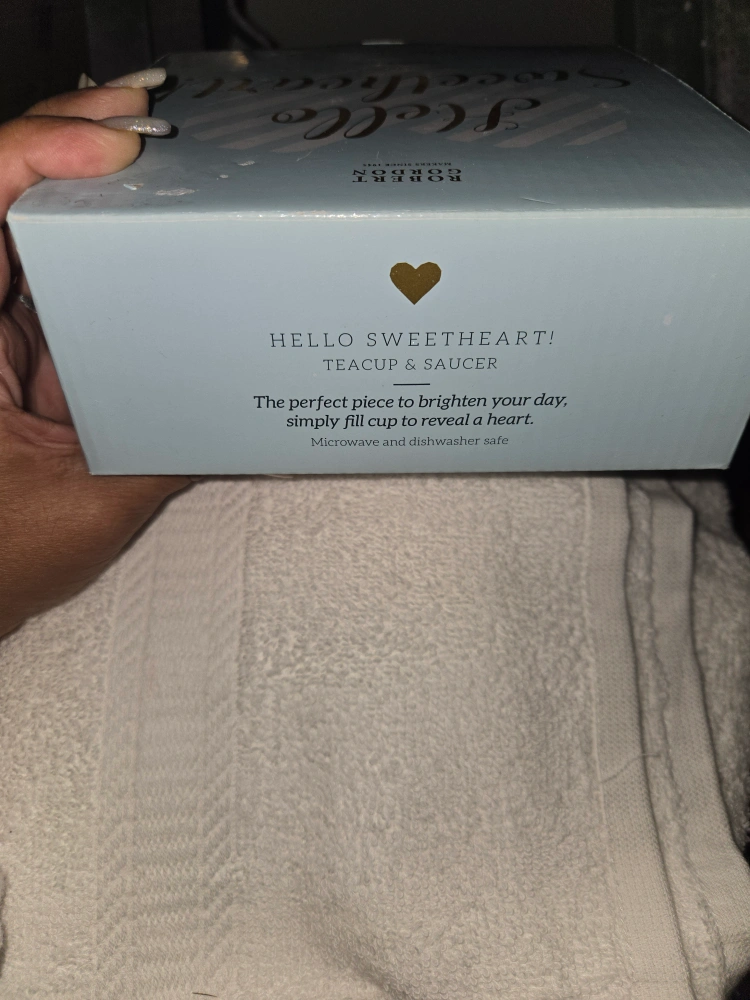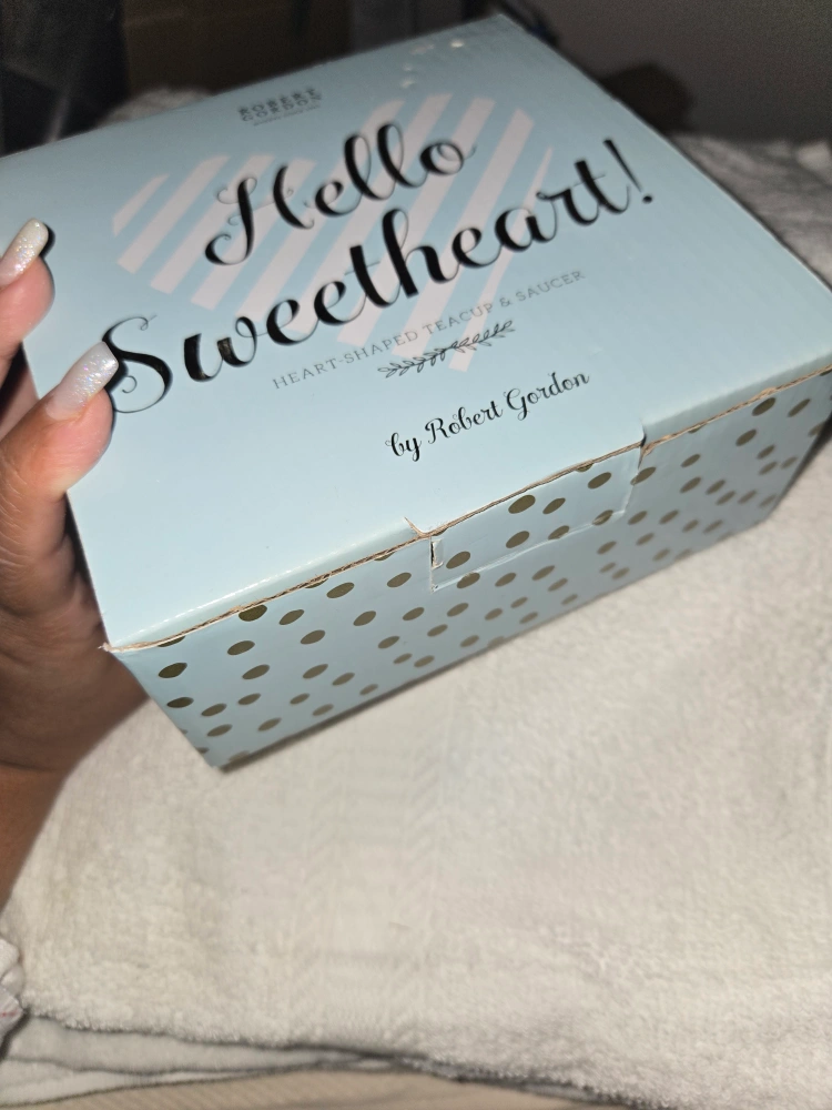 Heart-shaped teacup and saucer set. Microwave and dishwasher safe. In a beautiful box perfect to give a loved one