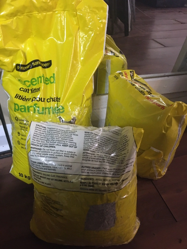 Bag of cat litter. Scented. 10 kg. 1 bag sealed, 2 bags open but litter are untouched.