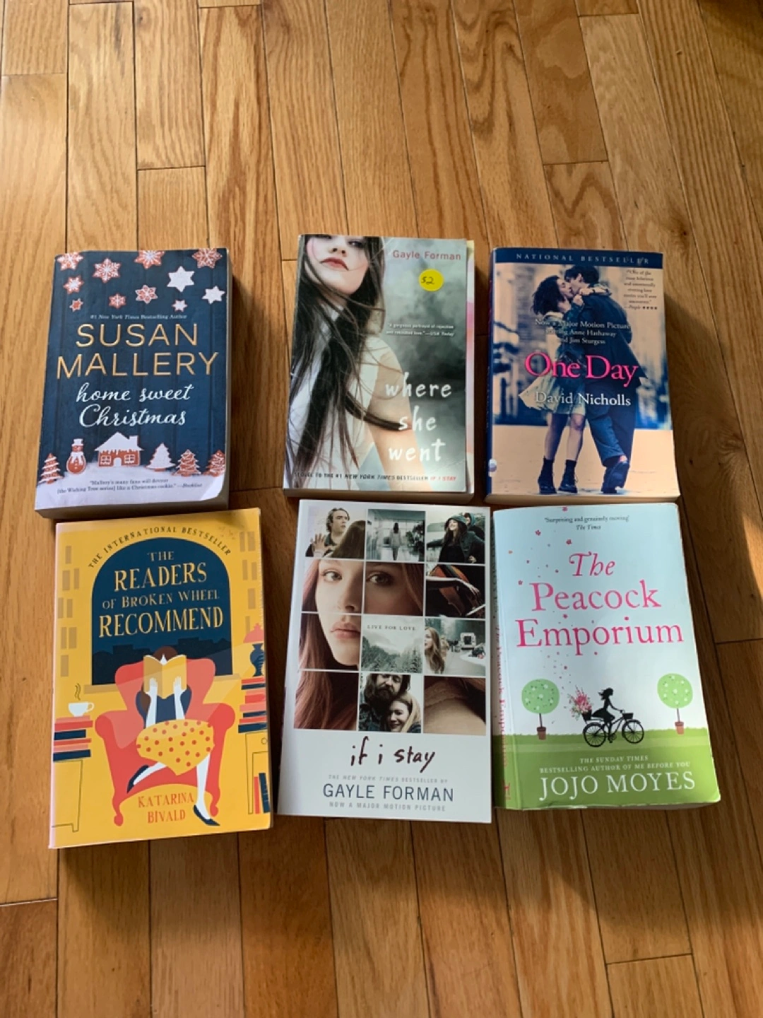 Where She Went & If I Stay are YA fiction, the rest are adult fiction with a little romance