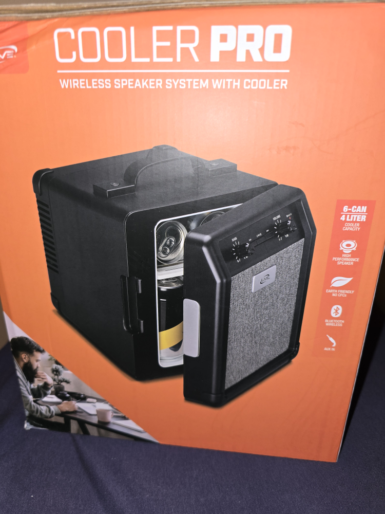 This speaker packs more than just sweet sounds. The Cooler Pro wireless speaker system includes a built-in six can cooler, letting you bring both the beats and the bevs. Go wireless and connect to your device with Bluetooth 5.0 or plug in the Aux and jam out to your playlists. Let loose with some pumped up beats using the bass control. Take it on the road with you or stash it away in your dorm or office for a tricked out speaker that brings break time to a whole new level.