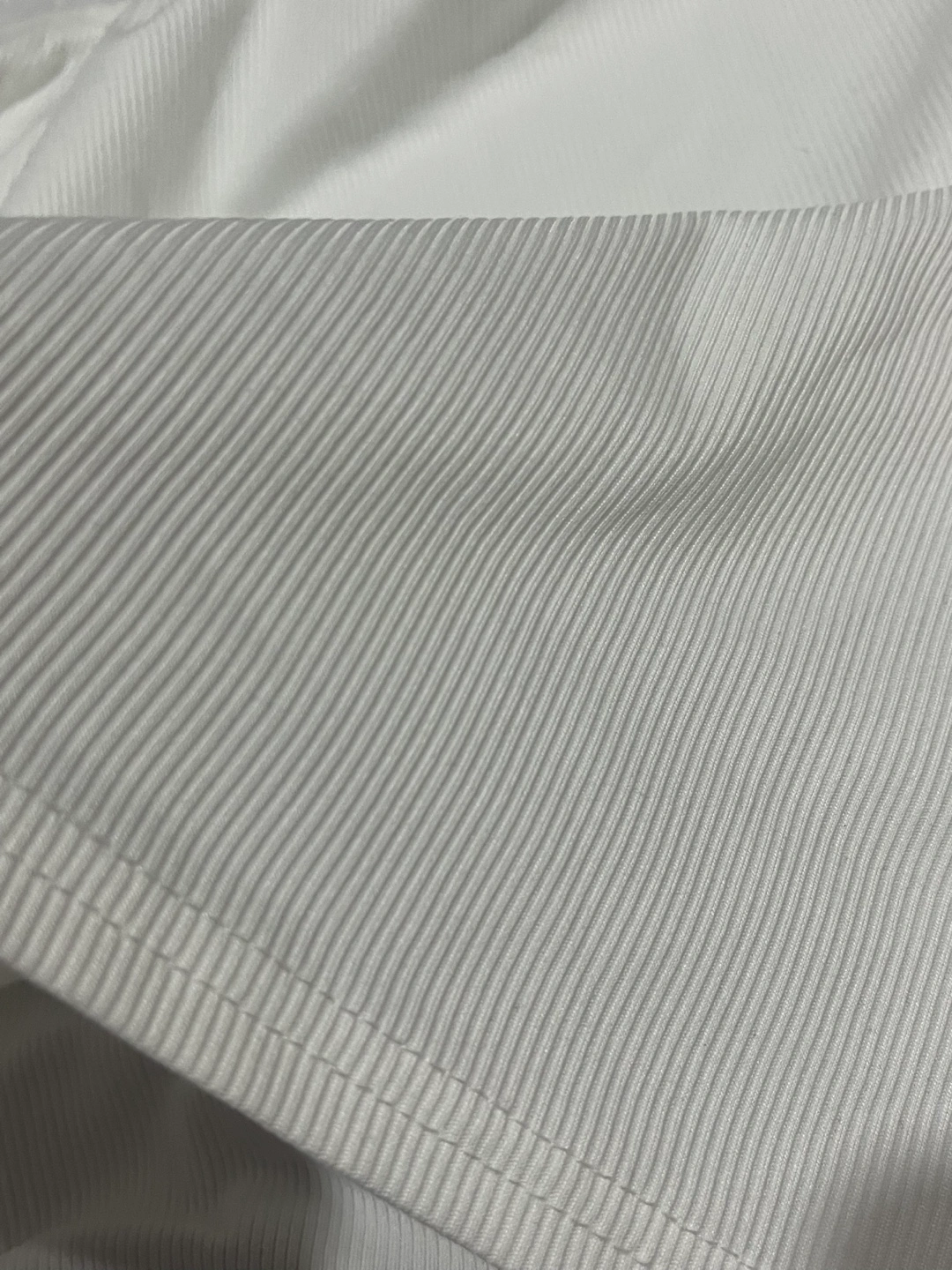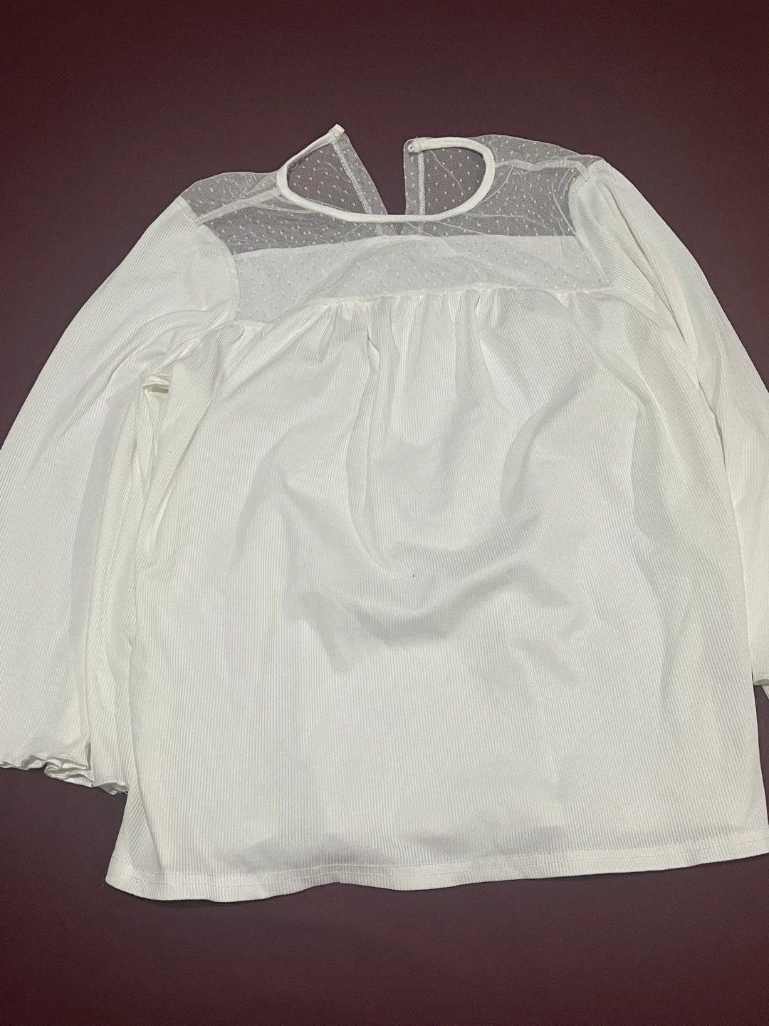 White long sleeve top with mesh detail on the shoulders and back. Ribbed material. Size medium.