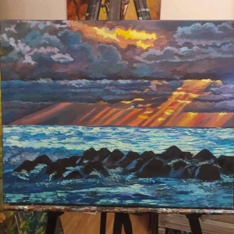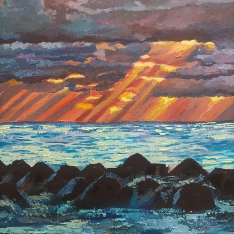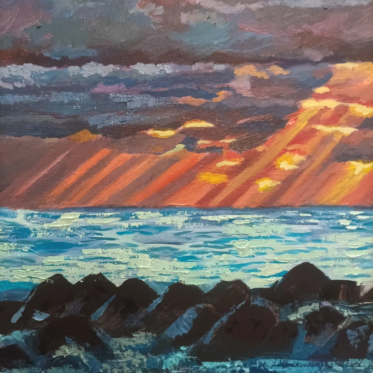 154Original painting of an ocean sunset. Painted with acrylics on canvas.21 by 16"