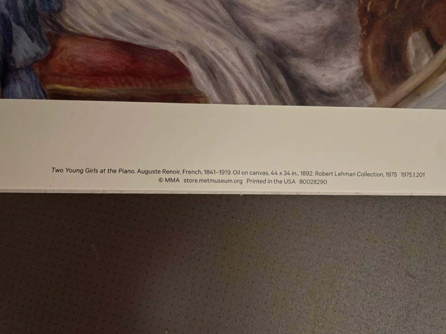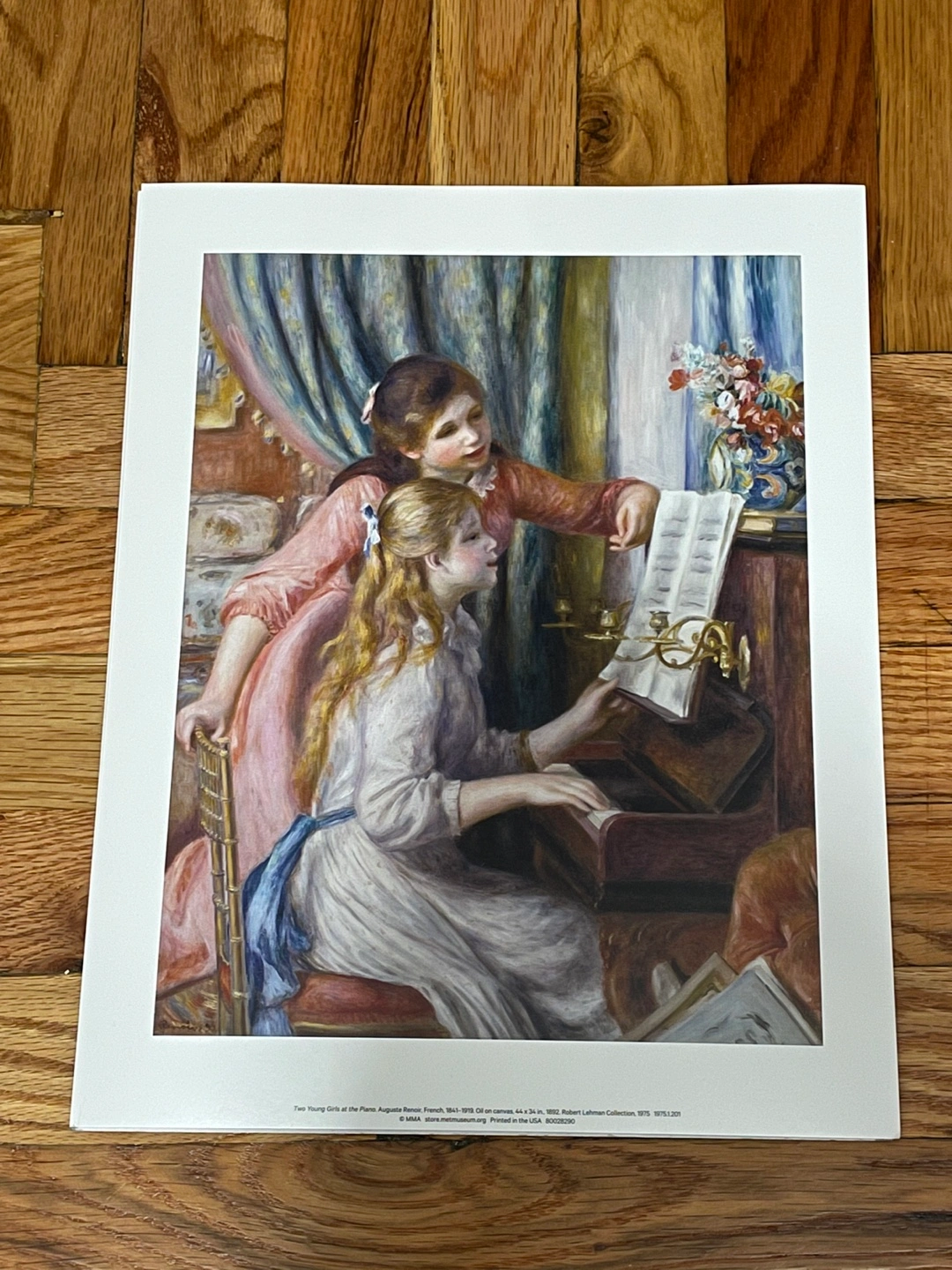 Print of a painting by Auguste Renoir. Two young girls, one playing piano, 34 x 44 in. From the Metropolitan Museum/MET Store.