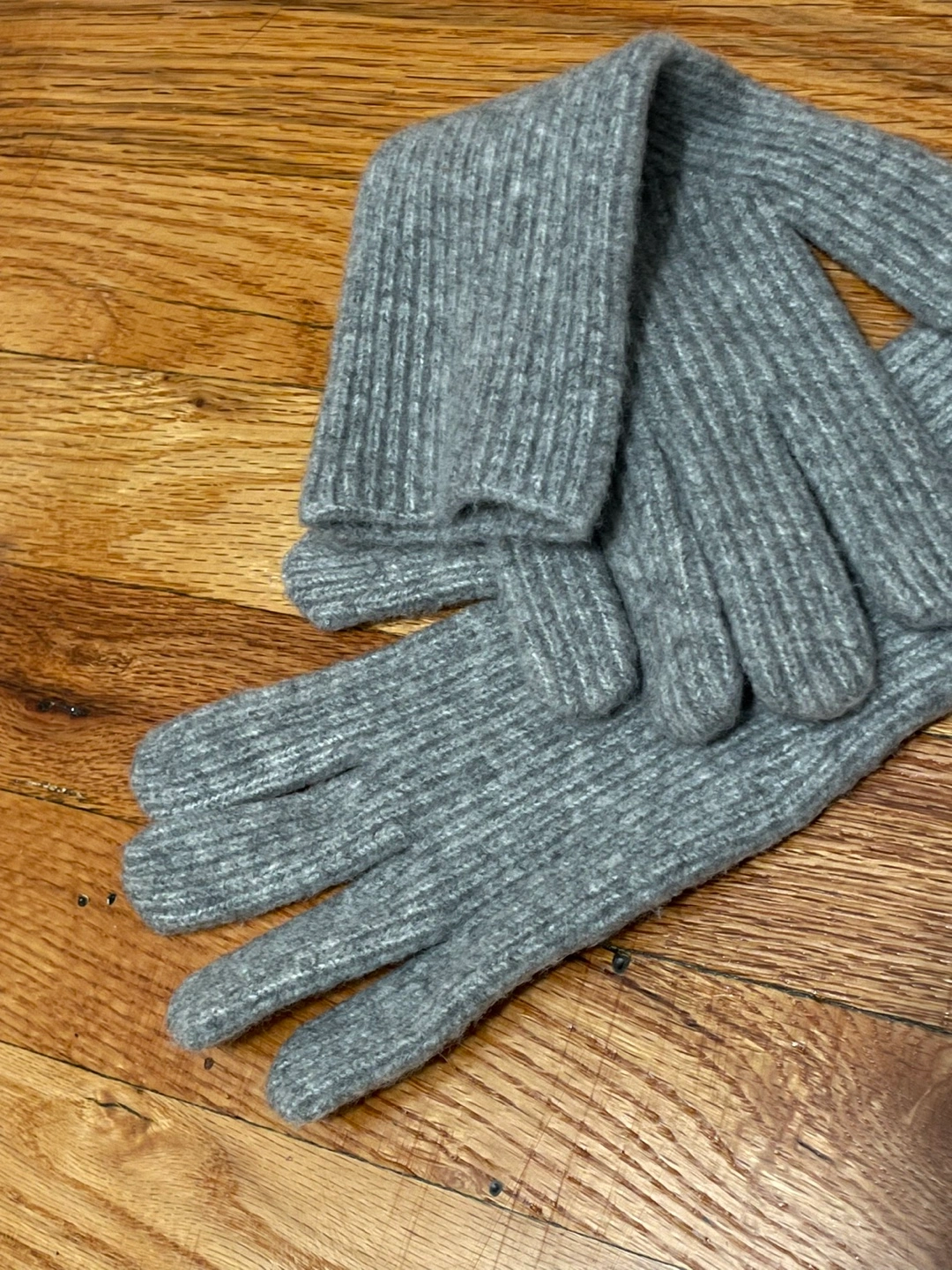 Soft, warm, plush gray gloves. Long and ribbed. Perfect for winter and pairing with neutrals.