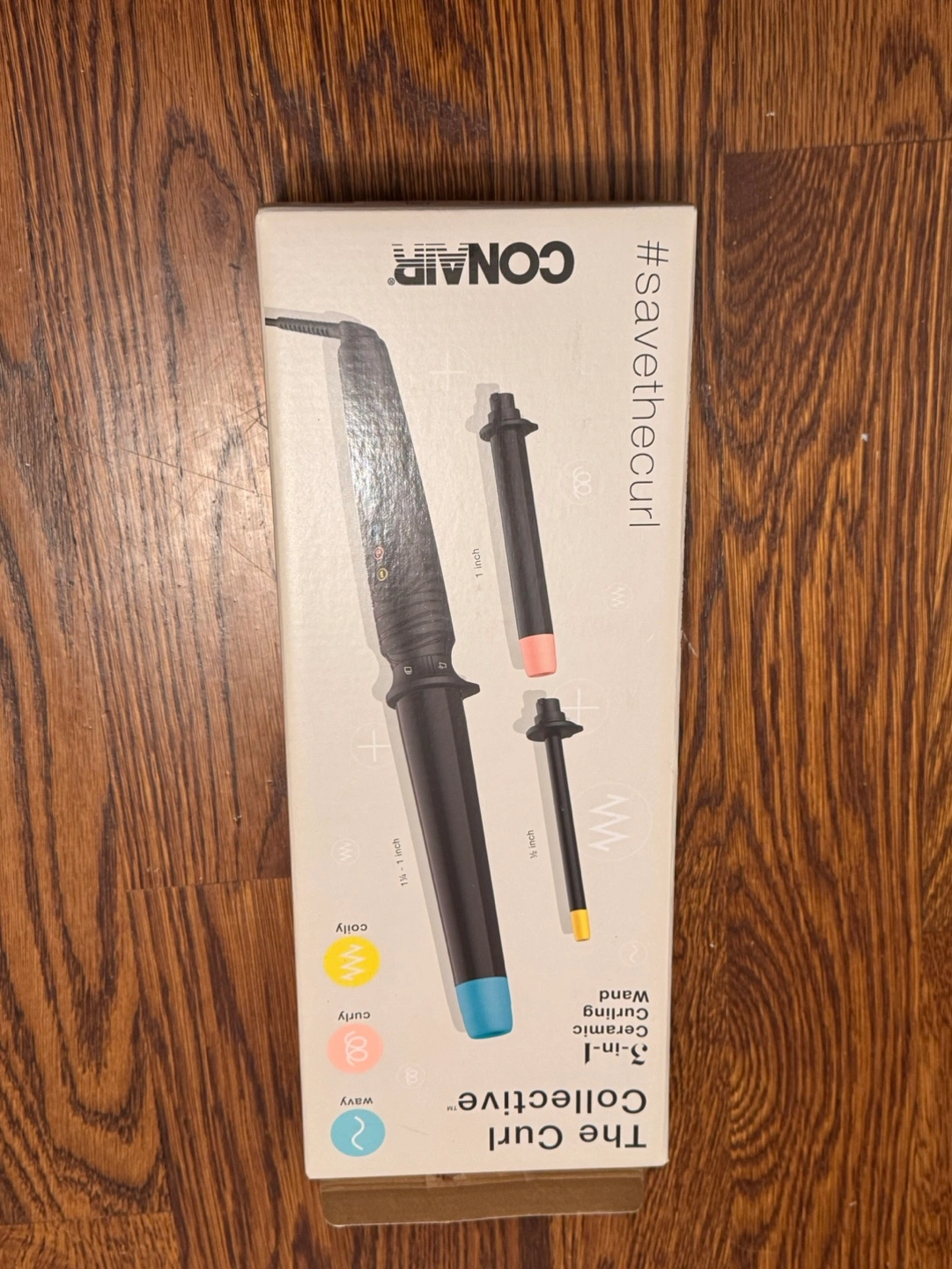 Ceramic curling wand, 3-in-1. Includes 3 barrels: 1/2 inch, 1 inch, and 1 1/4 inch.
