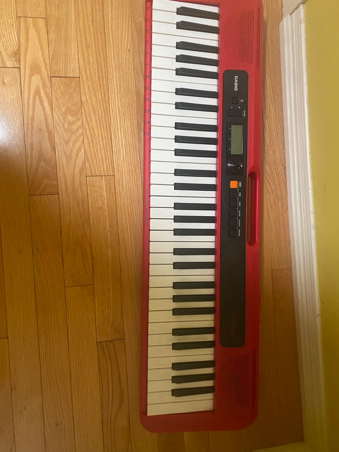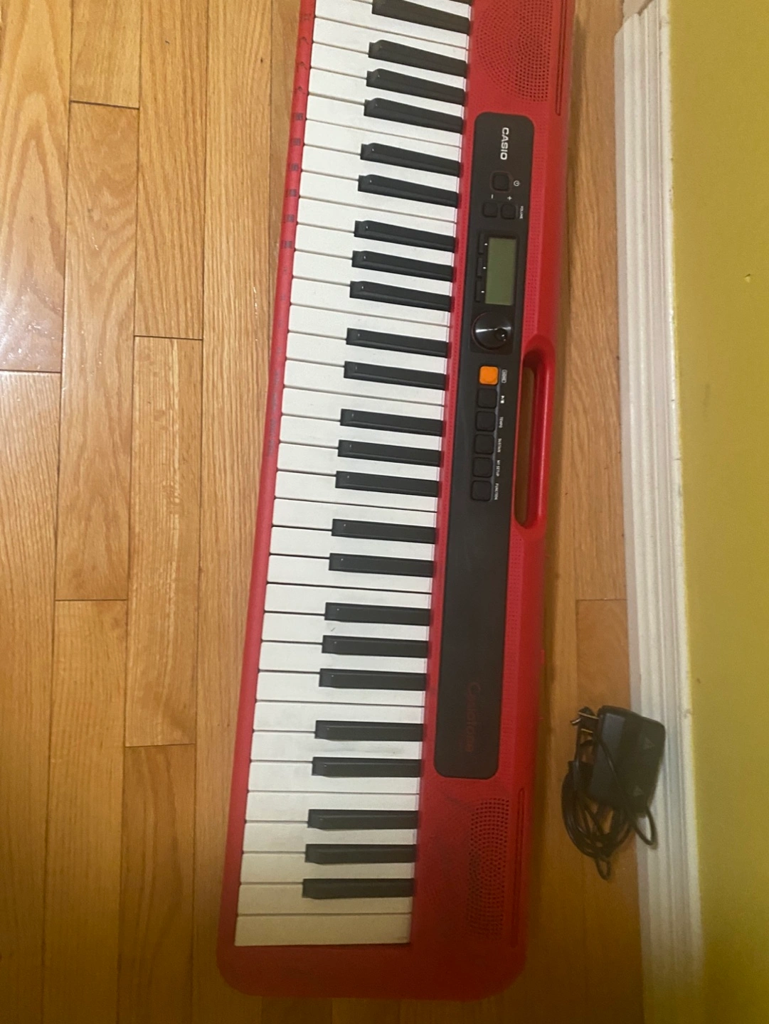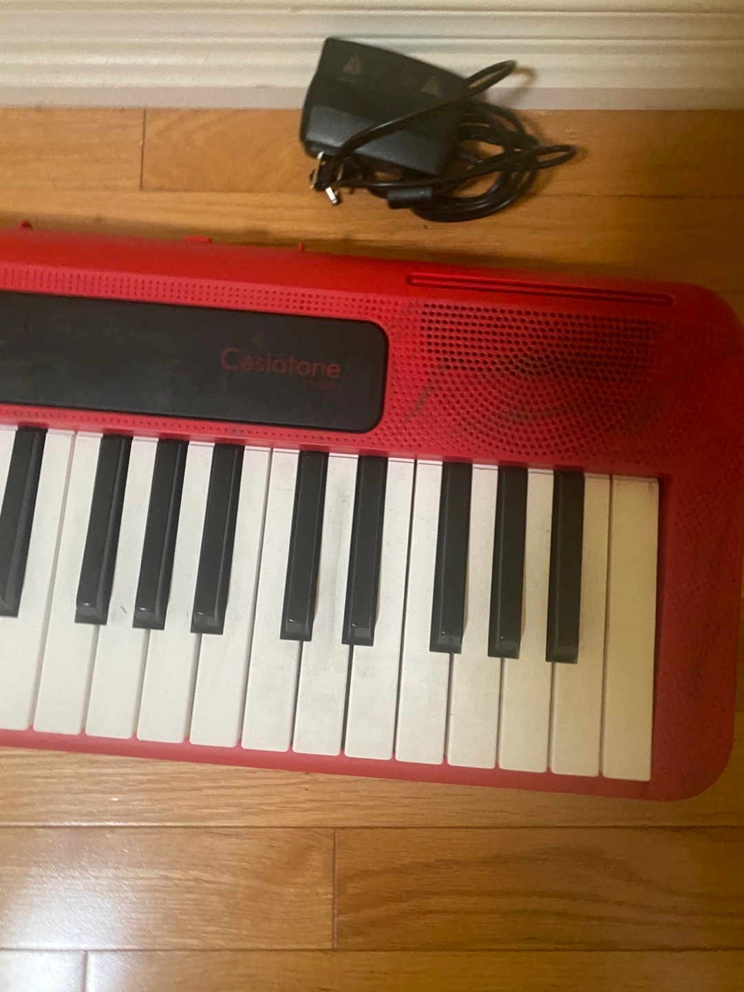 1000+Red keyboard with built-in speakers. Includes power adapter and original box.