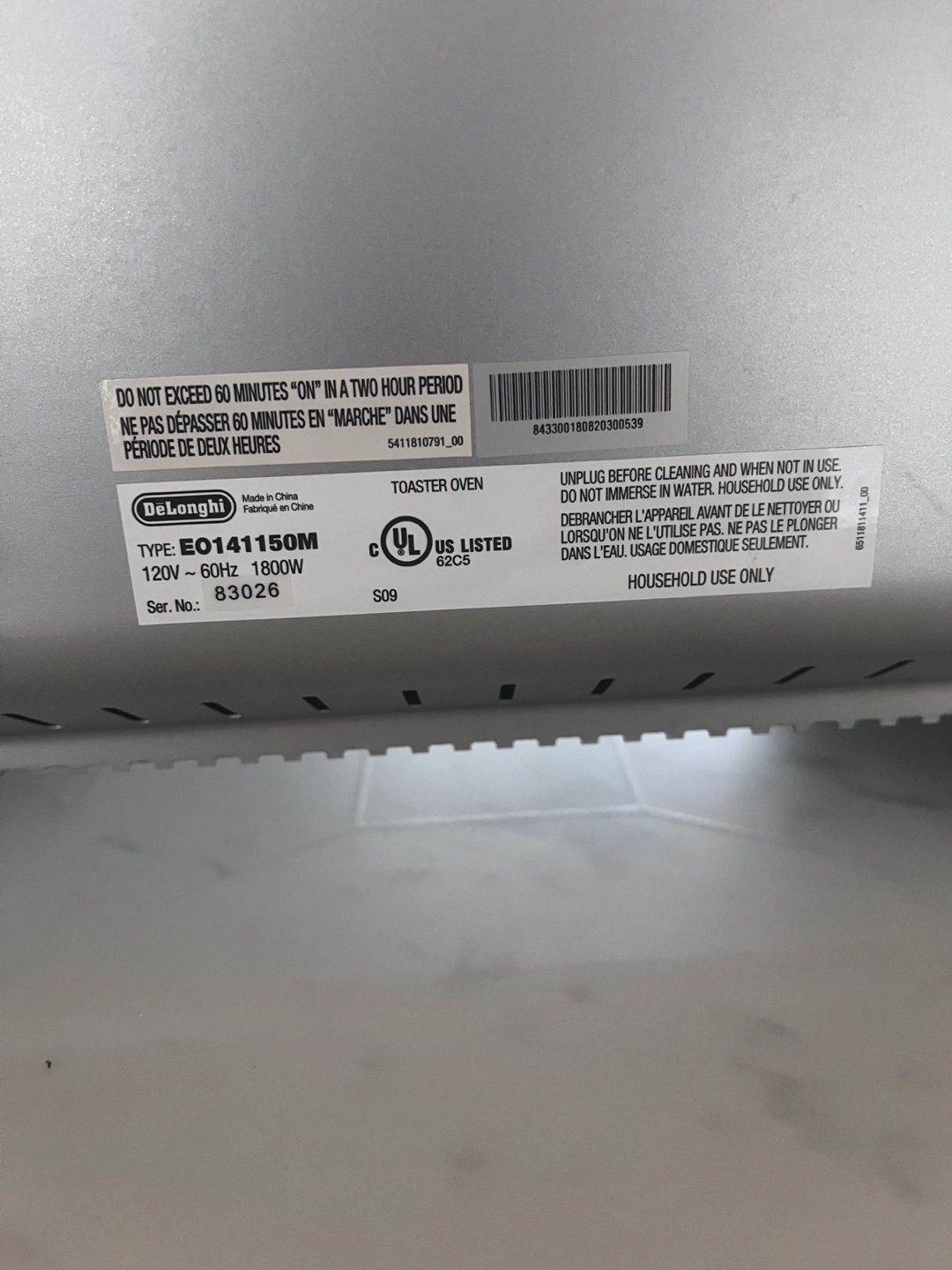 De'Longhi Convection Toaster Oven:9 operations
